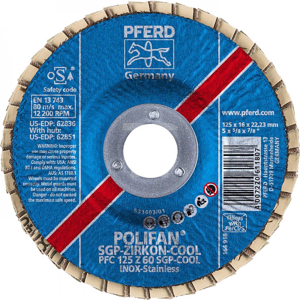 Круг пелюстковий шліфувальний Pferd 125x22 Z60 SGP-COOL - якісний витратний матеріал для прямих або кутових шліфувальних машин. З його допомогою болгарка перетворюється на ефективний інструмент для шліфування сталі та нержавіючої сталі (INOX).
