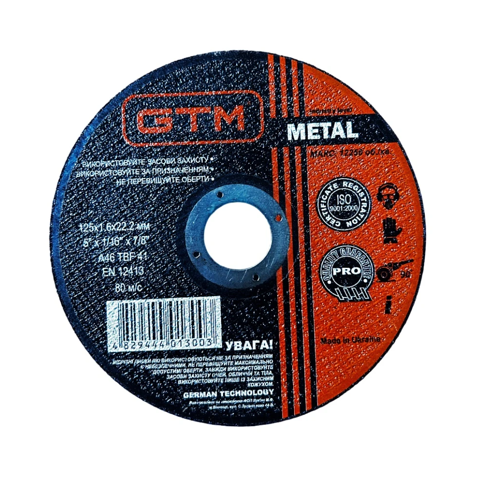 Характеристики Круг відрізний GTM 125*1.6*22 сталь (GTM_125_16_22)