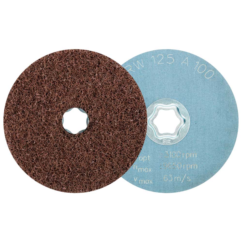 Pferd CC-VRW 125 A 100 - м'який волоконний круг із системи Combiclick для тонкого шліфування поверхонь і контурів, очищення металевих і лакованих поверхонь. Відкрита структура і висока гнучкість матеріалу запобігають забиванню волокон.