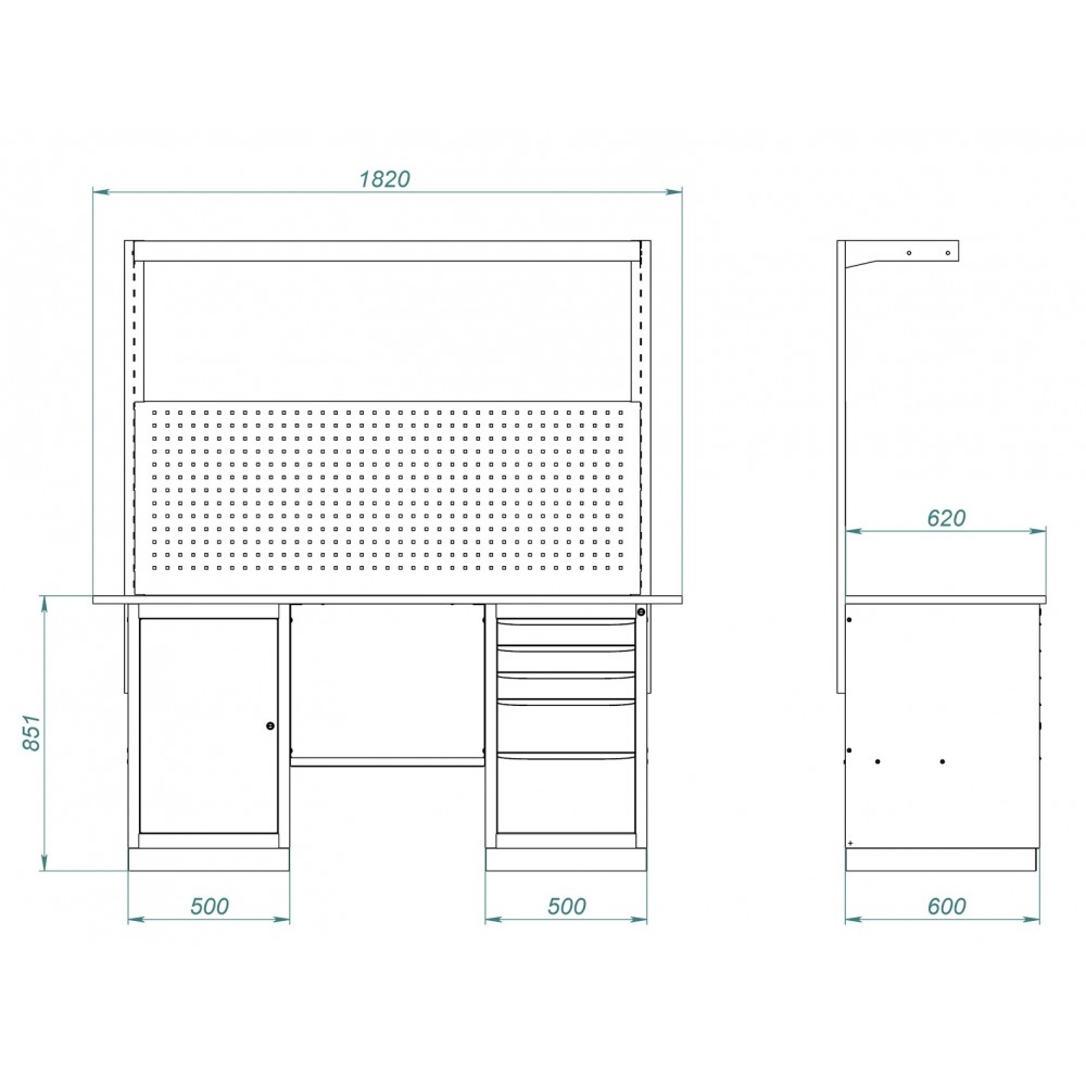 - наявність тумби з висувними ящиками дозволяє зберігати інструмент та витратні матеріали в порядку та під рукою;