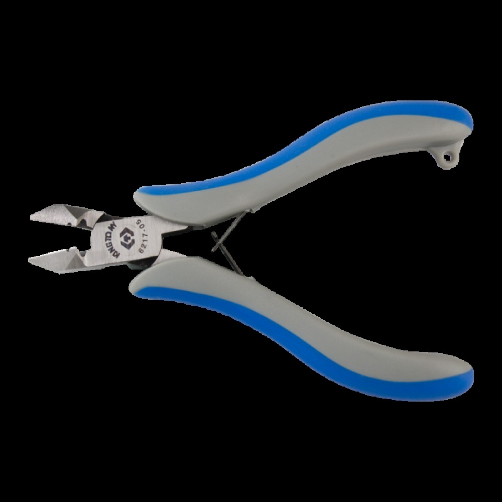 Призначення Різання проводів та дроту, тонких металевих прутків та дрібних елементів деталей. Галузь застосування Проведення електромонтажних робіт, ремонт електротехніки та обладнання, збирання електричних щитів та плат. Особливості • Спеціальне заточування ріжучих кромок «в нуль» для точних робіт з електронікою • Індукційне загартування • Поворотна пружина Технічні характеристики: Тип інструменту бокоріз діагональний Поворотна пружина є Діаметр різання, мм: - алюміній 2.0 - мідь 1.0 Параметри ріжучих кромок, мм - Розмір A 11.8 - Розмір B 17 - Розмір C 12.7 - Розмір D 17.7 - кут α 35 ° Матеріал рукояток PP+TPR (поліпропілен, термопластична гума) Довжина загальна, мм 118 Вага, кг 0.076