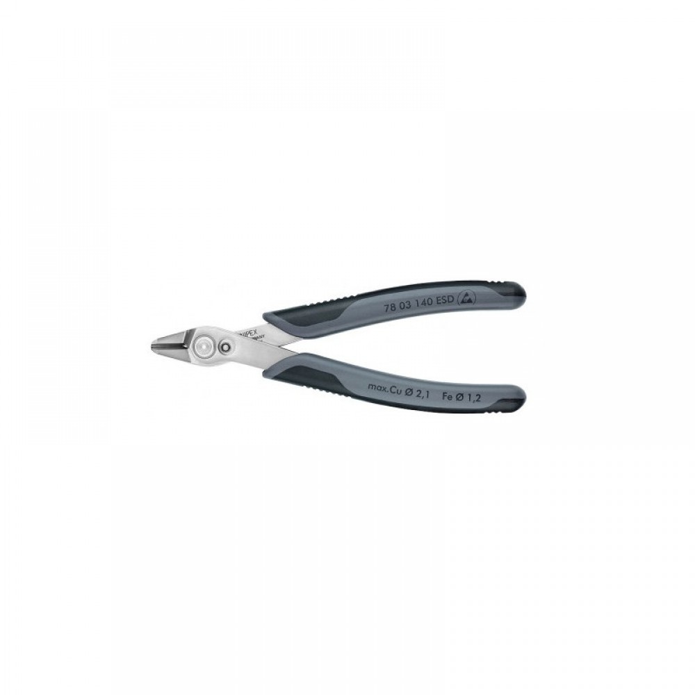ESD Антистатичний захист Поліровані головки М'який дріт 0,2 - 2,1 Ø mm Дріт середньої твердості 1,2 Ø mm Ручки двокомпонентні ESD Довжина загальна 140 mm Вага нетто 77 g для найтонших монтажних робіт, наприклад, в електроніці та точної механіки шліфовані, дуже гострі ріжучі кромки без фасок різання з контрольованим мікрозміщенням ріжучих кромок для надточної роботи навіть з найтоншим дротом і для тривалого терміну служби кінчики прецизійної форми ріжуть навіть щільно пригнані дроти товщі Ø 0,2 мм шарнір із заклепкою з легованої сталі виключно легкий хід для роботи з мінімальною втомою з розкриваючою пружиною та обмежувачем розкриття твердість ріжучих кромок приблизно 54 HRC INOX - нержавіюча сталь