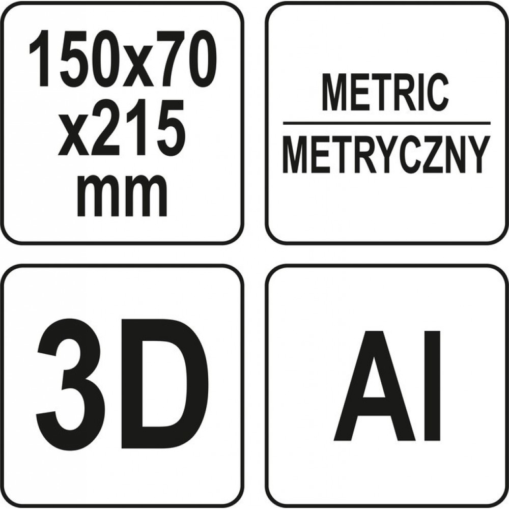Кутник алюмінієвий стереометричний 3D YATO 150х 70х 215 мм з транспортиром і шаблонами отворів
