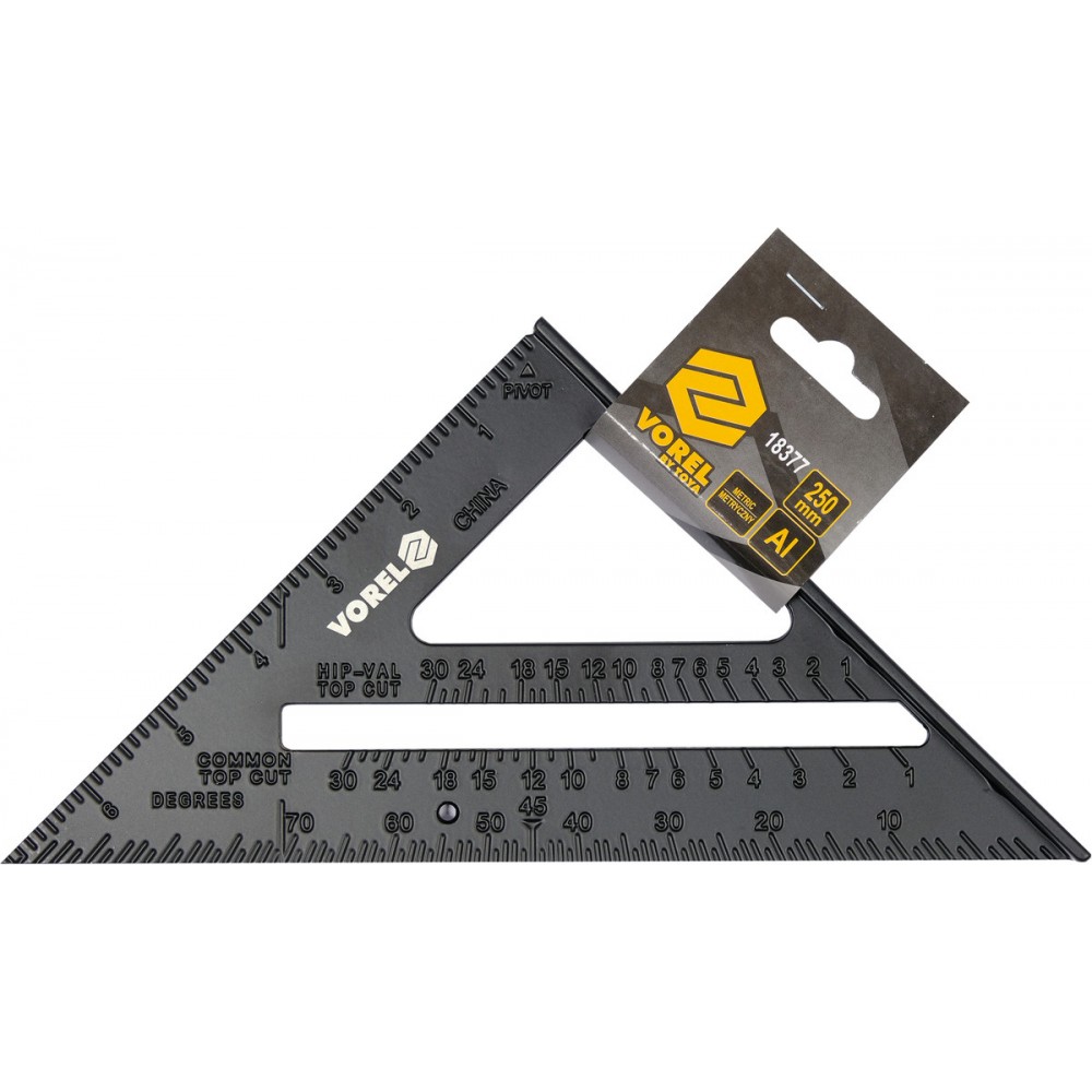 Кутник алюмінієвий VOREL зі стопкою, 180х 180х 250 мм і метричною шкалою