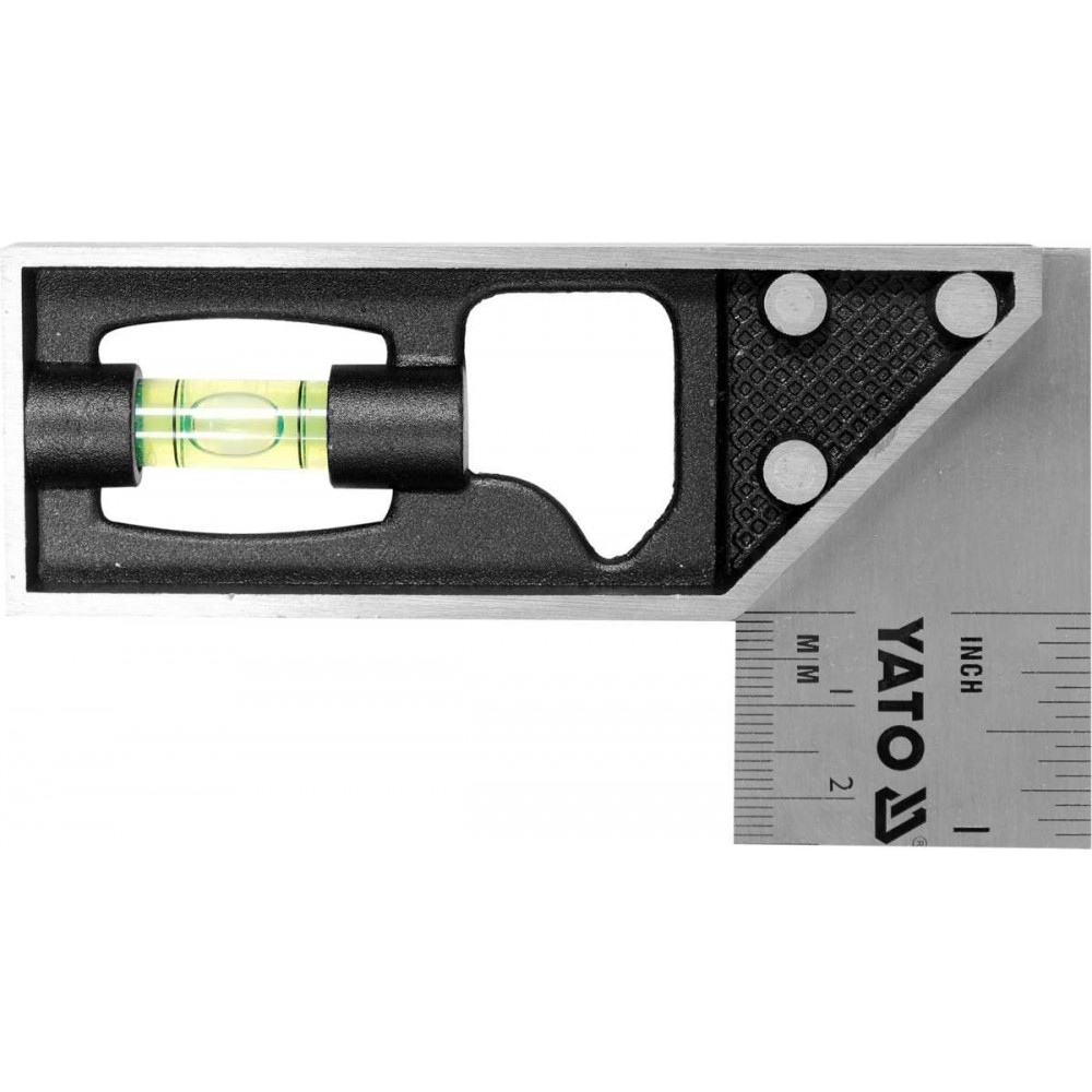 Кутник слюсара з нержавіючої сталі YATO: 90° з метричною шкалою і рівневою капсулою, 150 мм