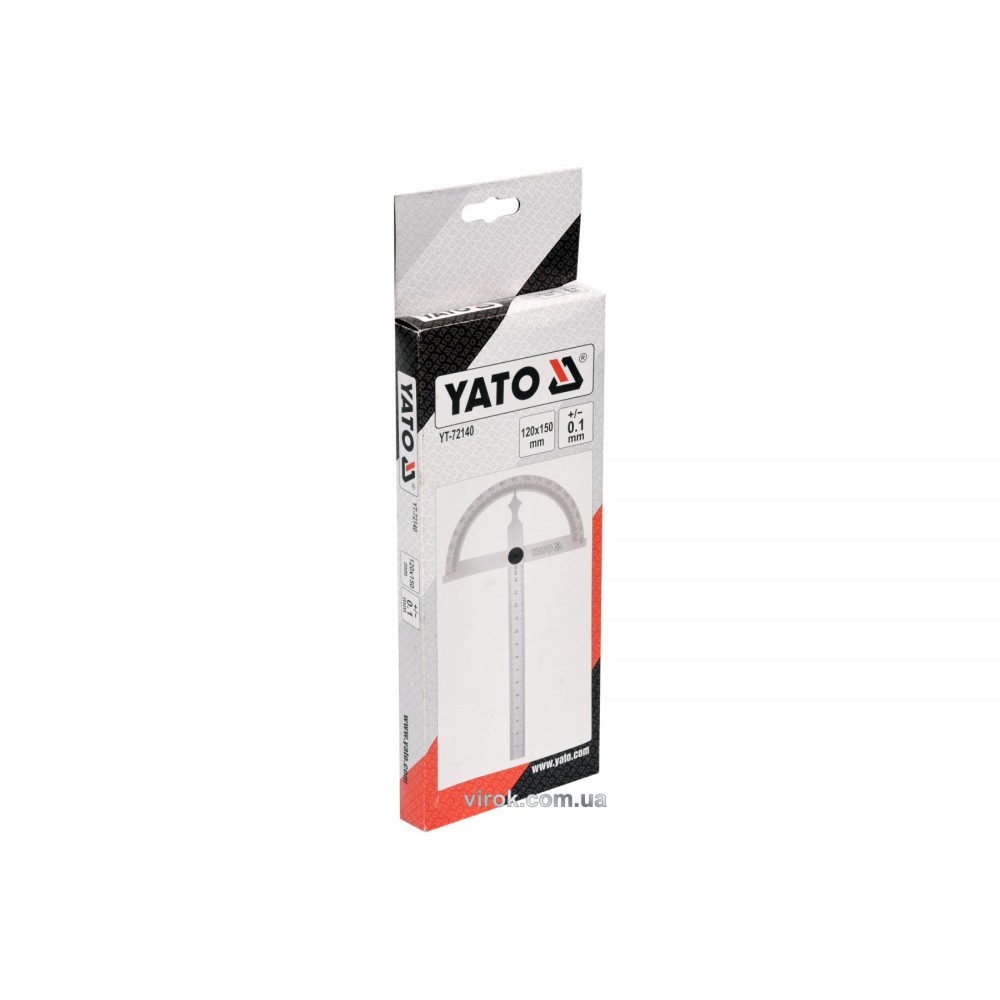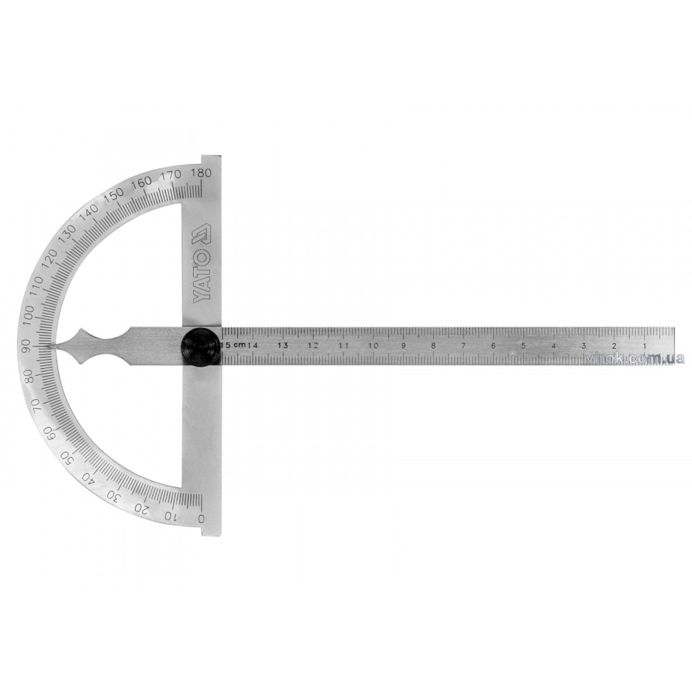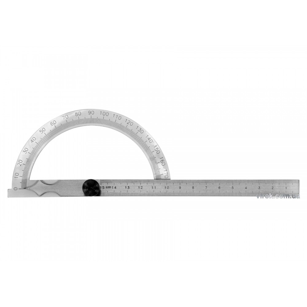 Транспортир YATO YT-72140 - прецизійний регулювальний дисковий транспортир призначений для вимірювання кутів. Виготовлений з вуглицевої сталі. Чітка шкала впливає на точність і легкість зчитування значення. В комплекті зручний футляр для зберігання