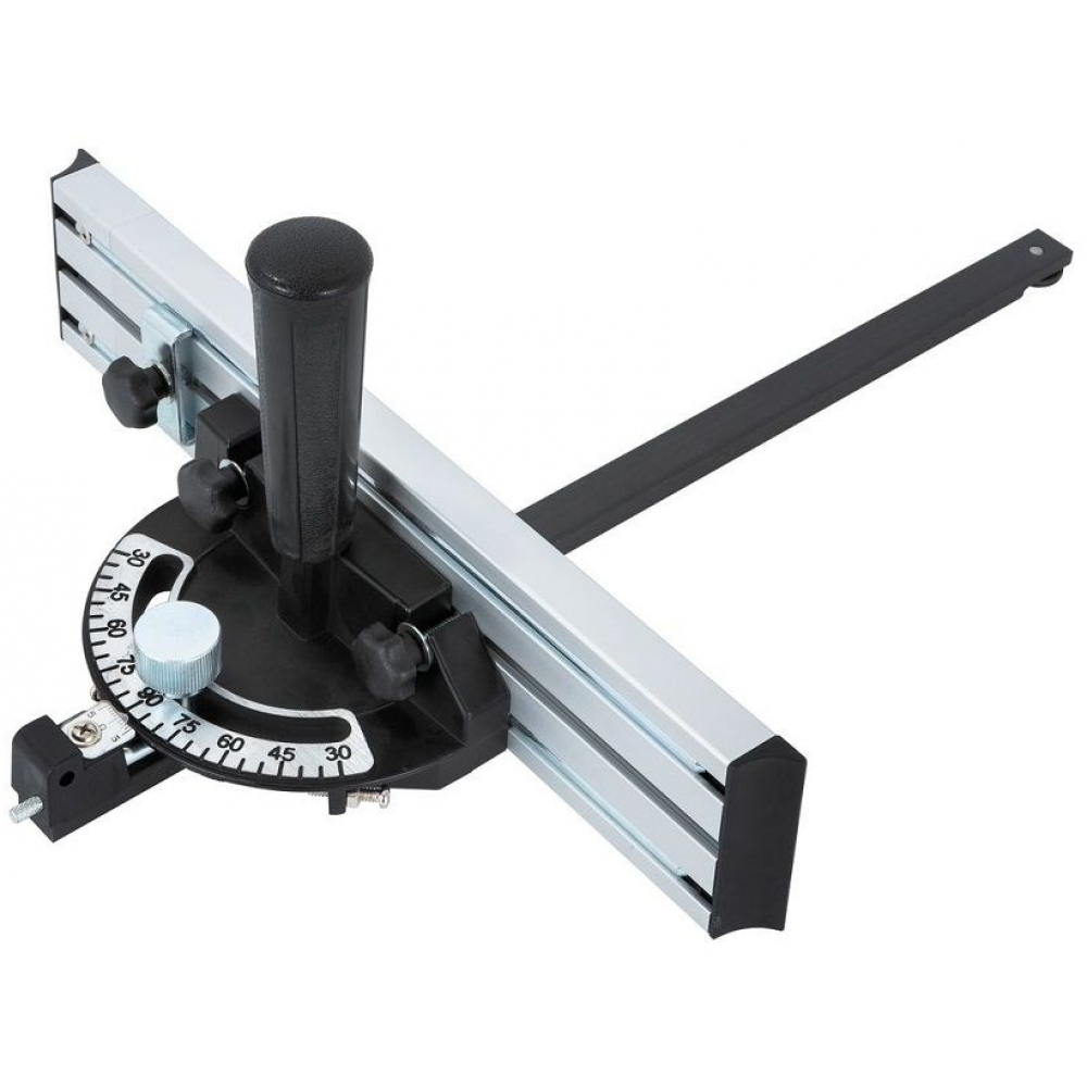 Опорою заготовки служить накладка з алюмінієвого профілю висотою 7 см з висувним розширенням. Обладнаний рукояткою, транспортирною шкалою та фіксатором налаштування кута.