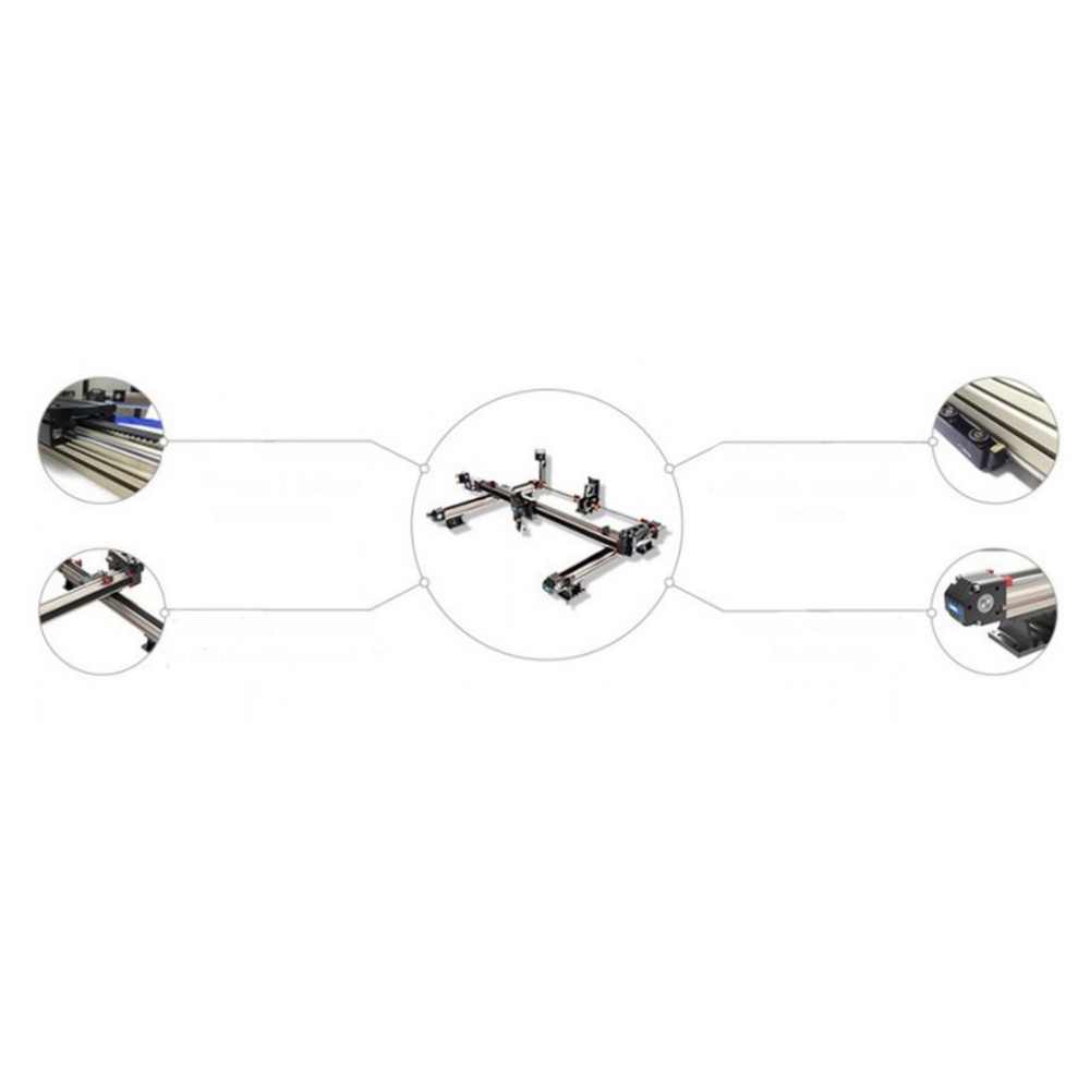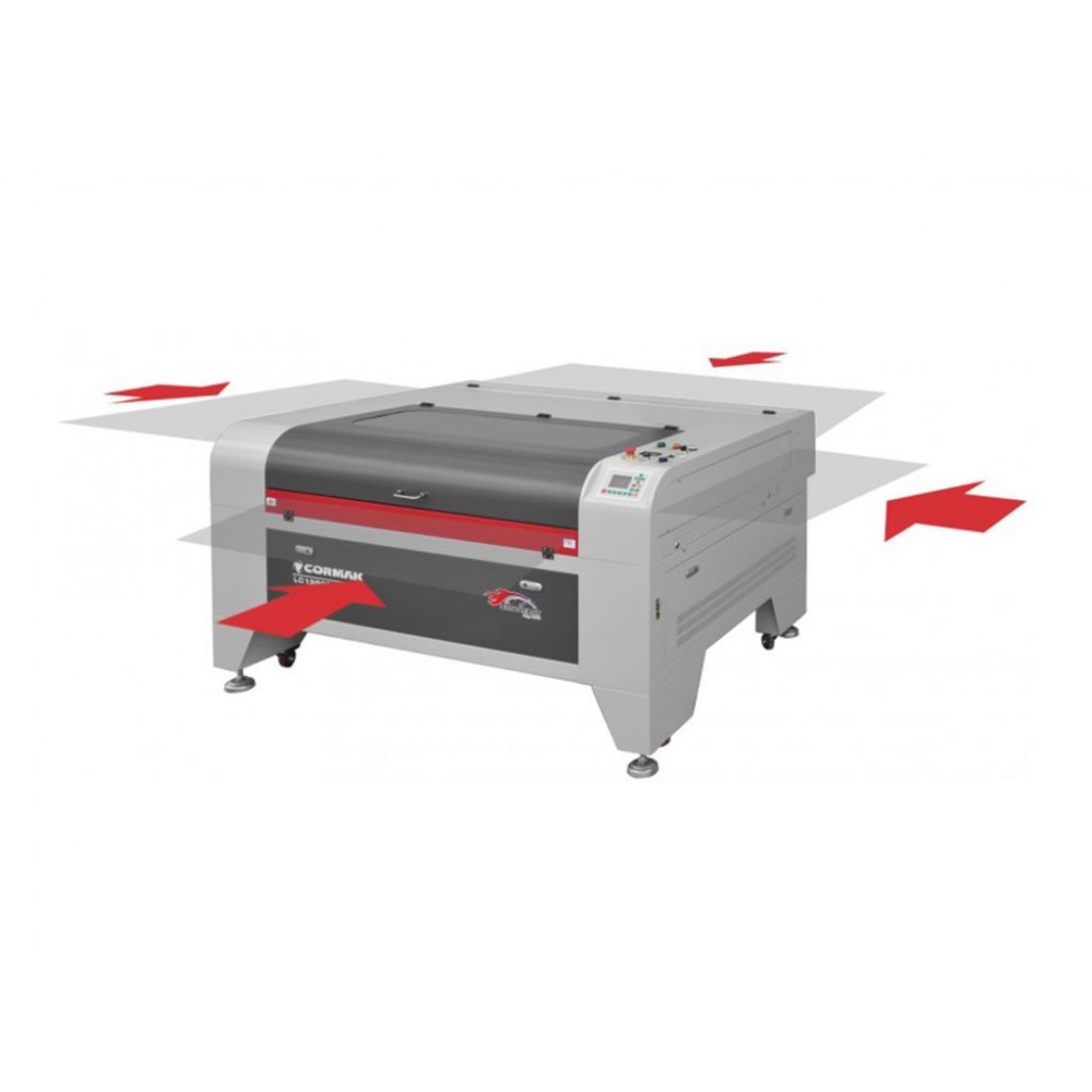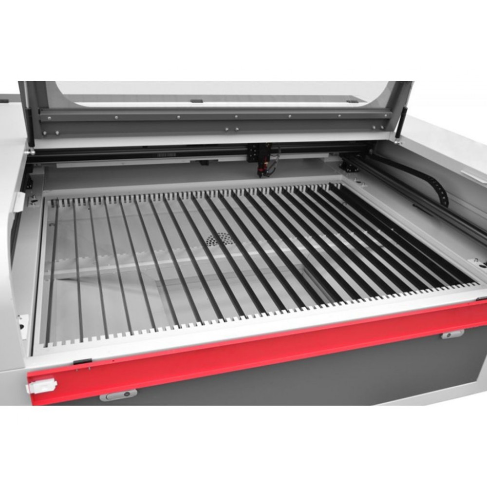 У вартість лазерного плоттера входять, серед іншого: червона точка, платформа, що електрично опускається до 300 мм, стільникова накладка і ножовий стіл, витяжка: дно з ящиком для відходів, вбудований компресор, вентилятор, охолодження, яке можна запустити під час роботи.