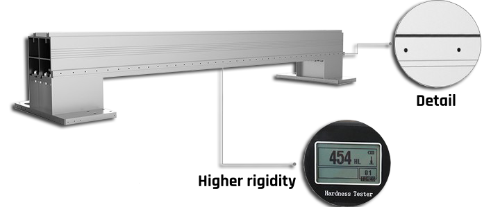 Конструкція станини має внутрішню структуру, що нагадує стільники, виготовлені з множини зварних прямокутних труб. Усередині труб розміщені ребра жорсткості, що збільшують міцність станини, а також підвищують жорсткість та стабільність направляючої рейки для ефективного запобігання її деформації. Висока міцність, стабільність, міцність на розрив забезпечує 20 років без деформації.