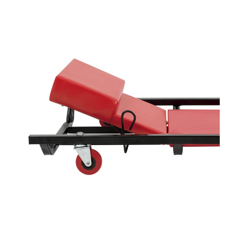 Лежак для автомеханіка REDATS з 4-ступеневим регулюванням підголівника та міцною конструкцією забезпечує зручну роботу під автомобілем, зносостійкість та тривалий термін служби. Каркас виготовлений з міцної сталі і має високу стійкість до деформацій. Оббивка виготовлена з приємної на дотик екошкіри, має привабливий вигляд і легко очищається. Розмір лежака 1017х428 мм забезпечує підтримку тіла в природному положенні, а висота 97 мм дозволяє працювати під низькими авто і дає зручний доступ до всіх вузлів автомобіля.