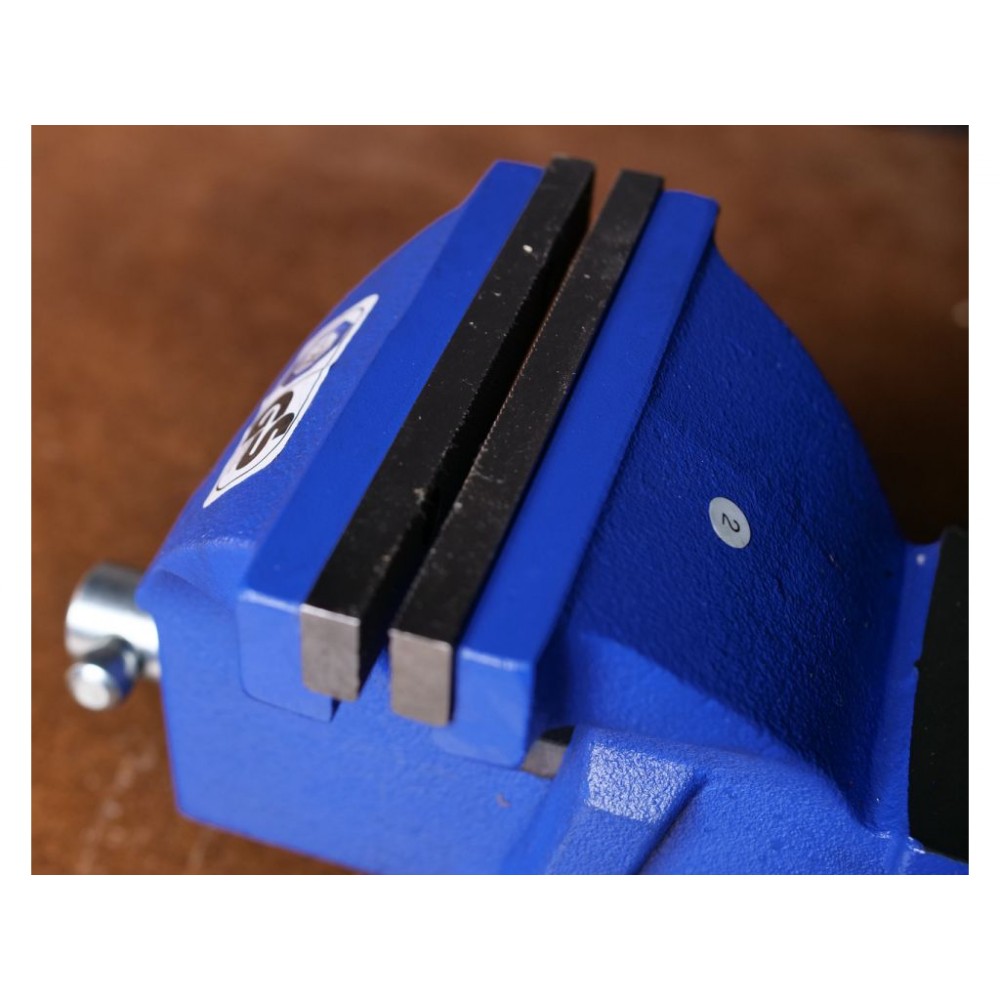 Губки виготовлені із загартованої сталі, що гарантує їх стійкість до деформацій і зношування. Спеціальне покриття на губках запобігає пошкодженню поверхні оброблюваної деталі. Завдяки закритому корпусу з сірого чавуну, ці лещата настільні 150 мм надзвичайно міцні та довговічні.