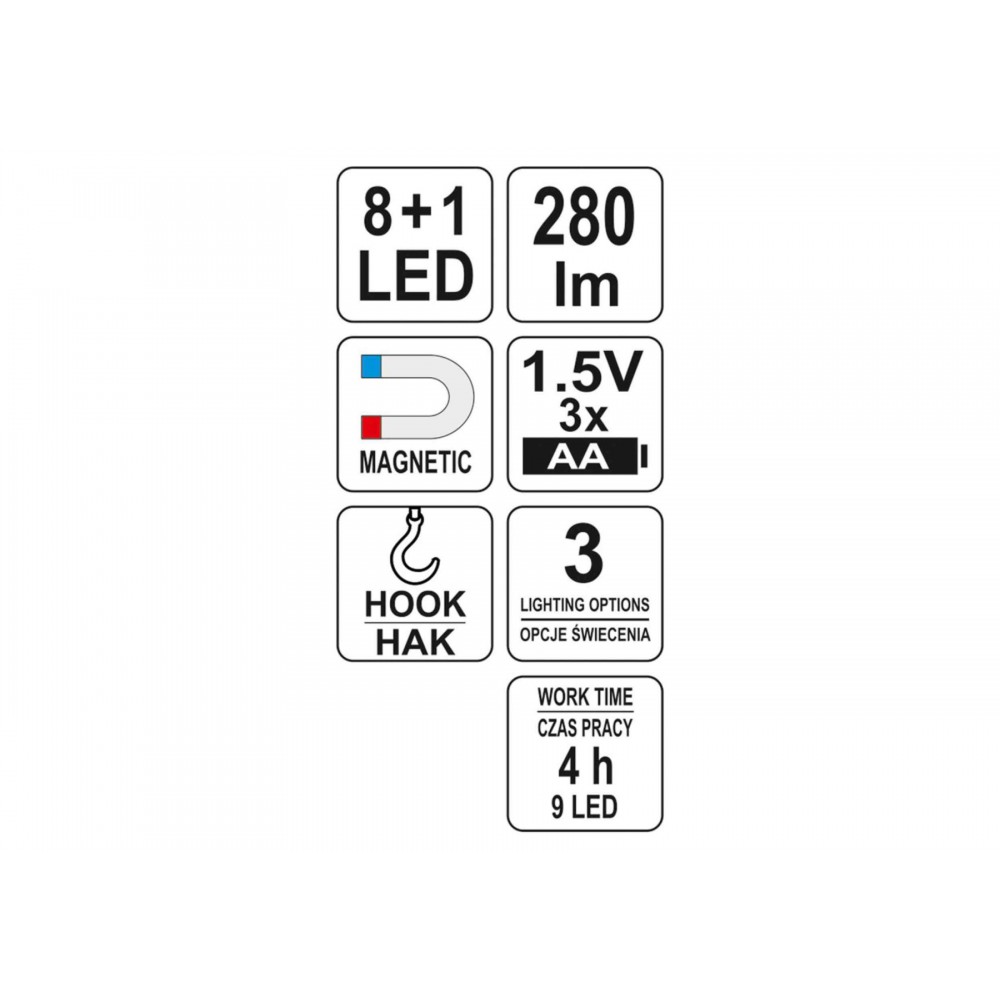 Ліхтар навісний світлодіодний YATO 8+1 LED 280 лм 3 x АА