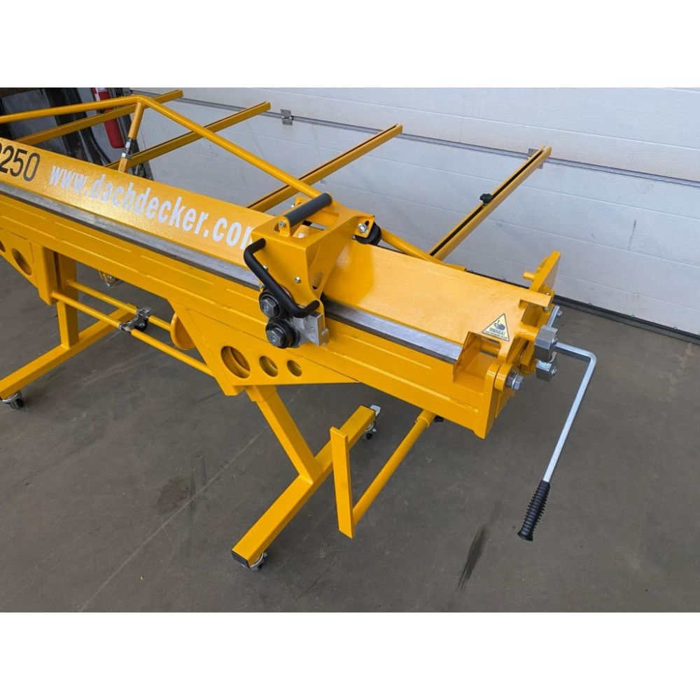 Листозгинальний верстат Dachdecker ZRF-LM – 2250/1,0 - це професійне обладнання для ручного згинання листового металу товщиною до 1 мм під кутом від 0° до 155°. Може працювати з шириною листа до 2250 мм, глибина подачі необмежена. Оснащений роликовим ножем з високолегованої сталі, який забезпечує якісне різання листового металу товщиною до 0,8 мм.