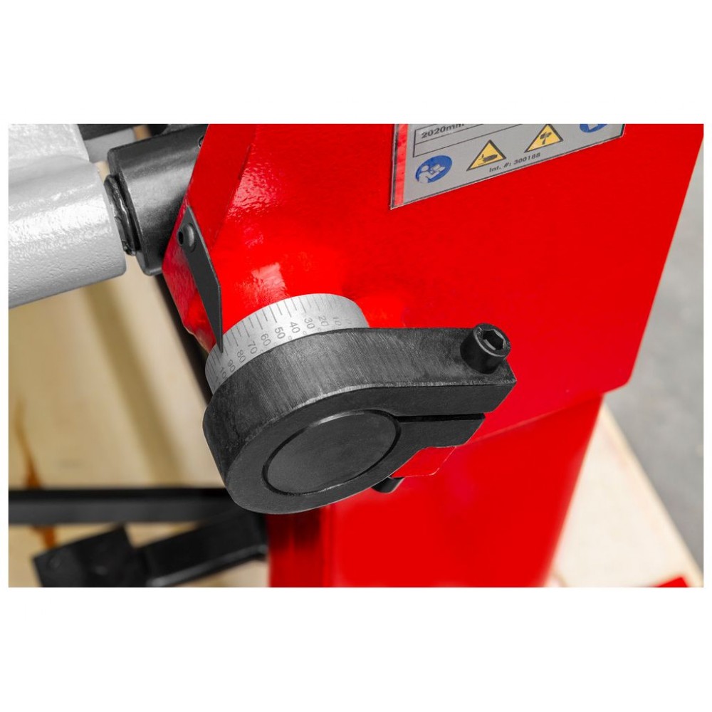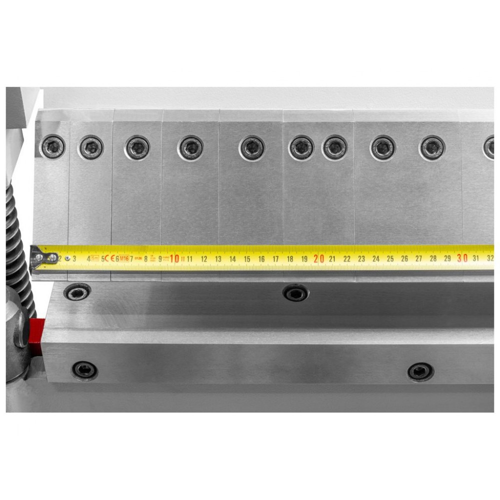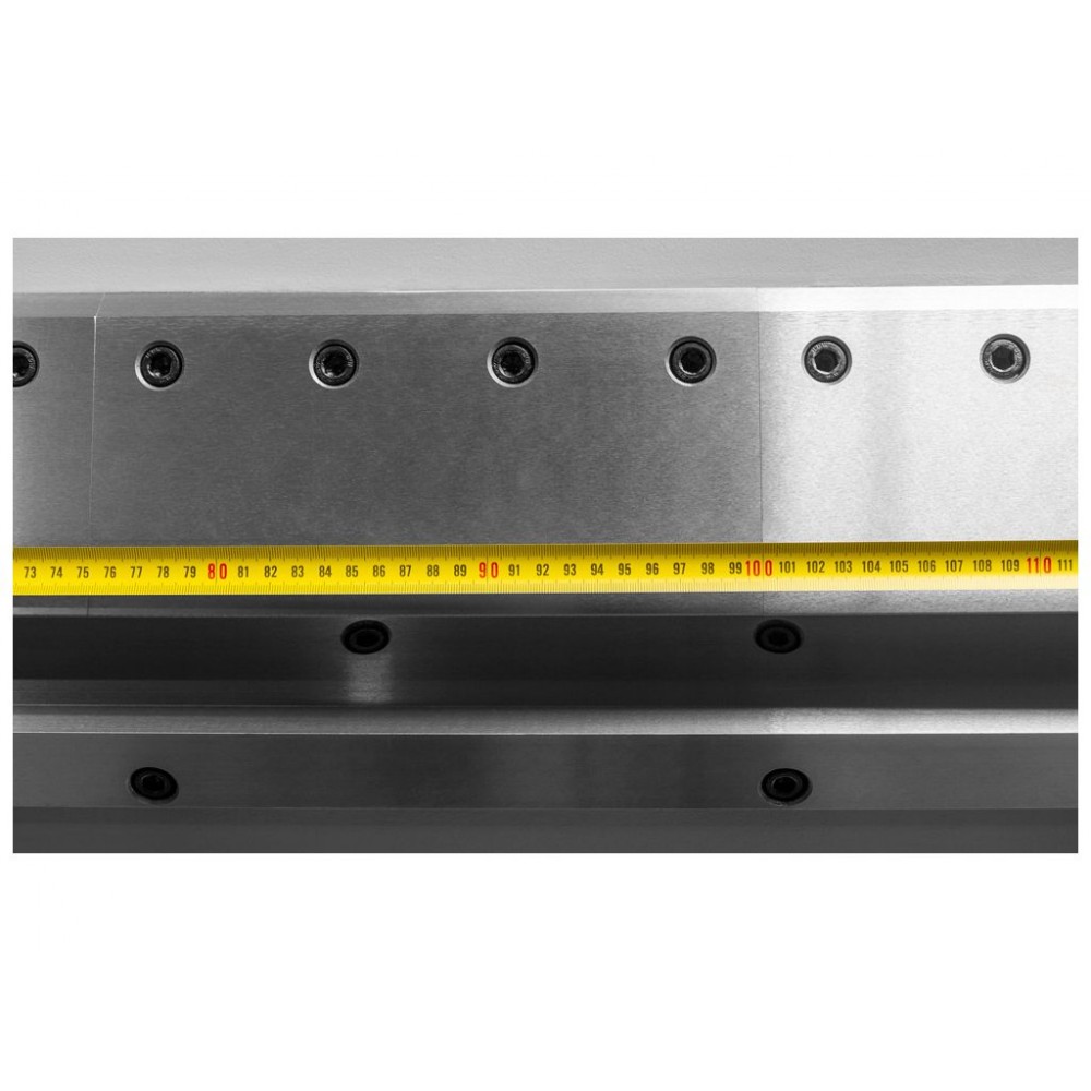 Для точного налаштування кута згину верстат оснащений градусною шкалою. Згинальні елементи виконані з високоякісної сталі, що гарантує їх зносостійкість і тривалий термін служби. Жорстка конструкція вагою 540 кг забезпечує стабільність обробки і високу точність згинання. Цей сегментний листозгин відмінно підійде для дрібносерійних виробництв, які спеціалізуються на виготовленні покрівельних елементів, водостічних і вентиляційних систем, повітроводів тощо.