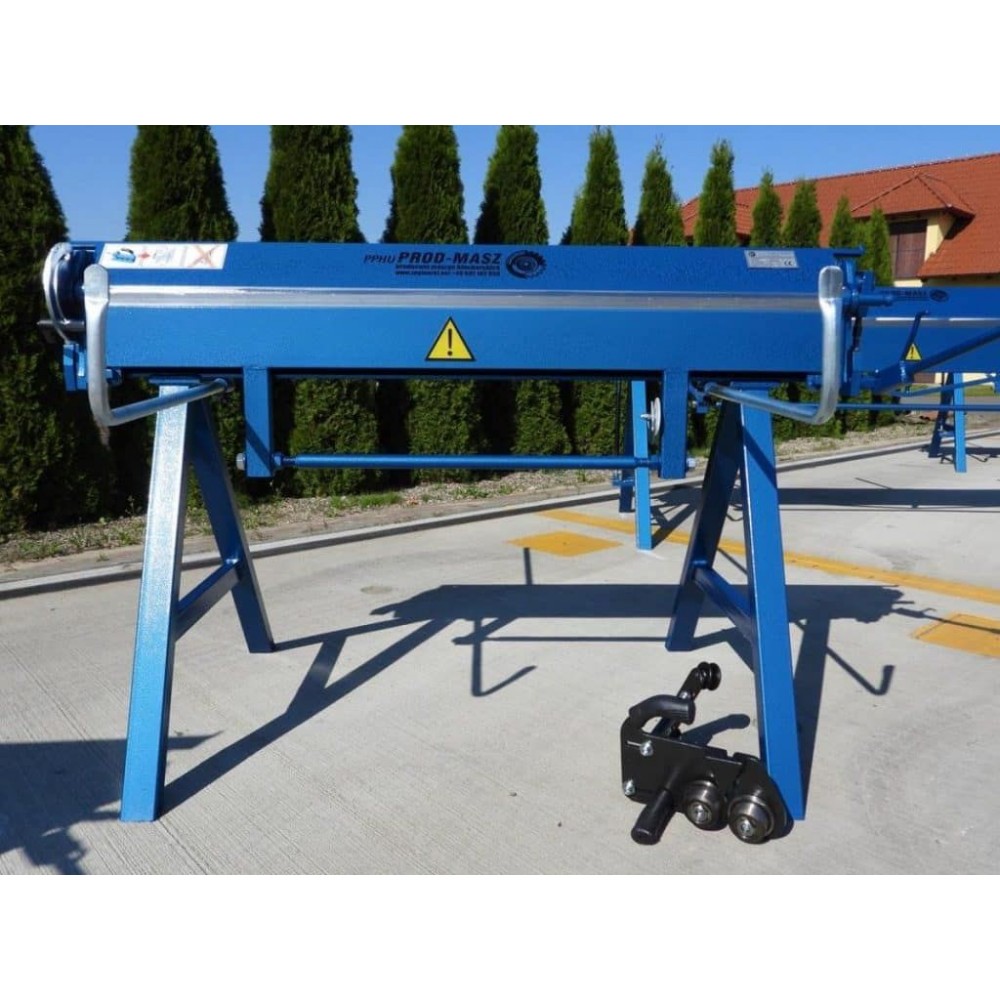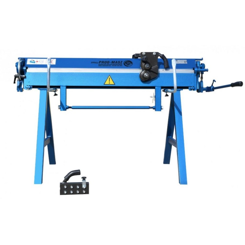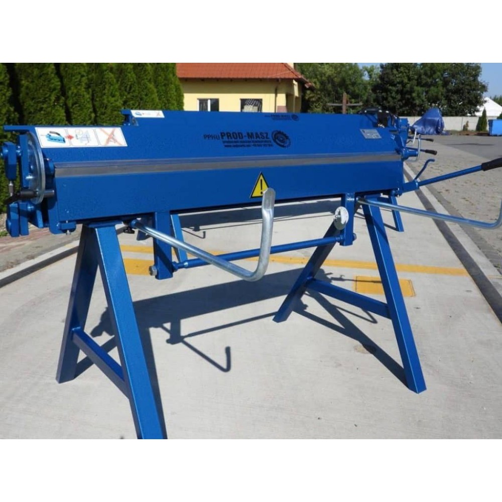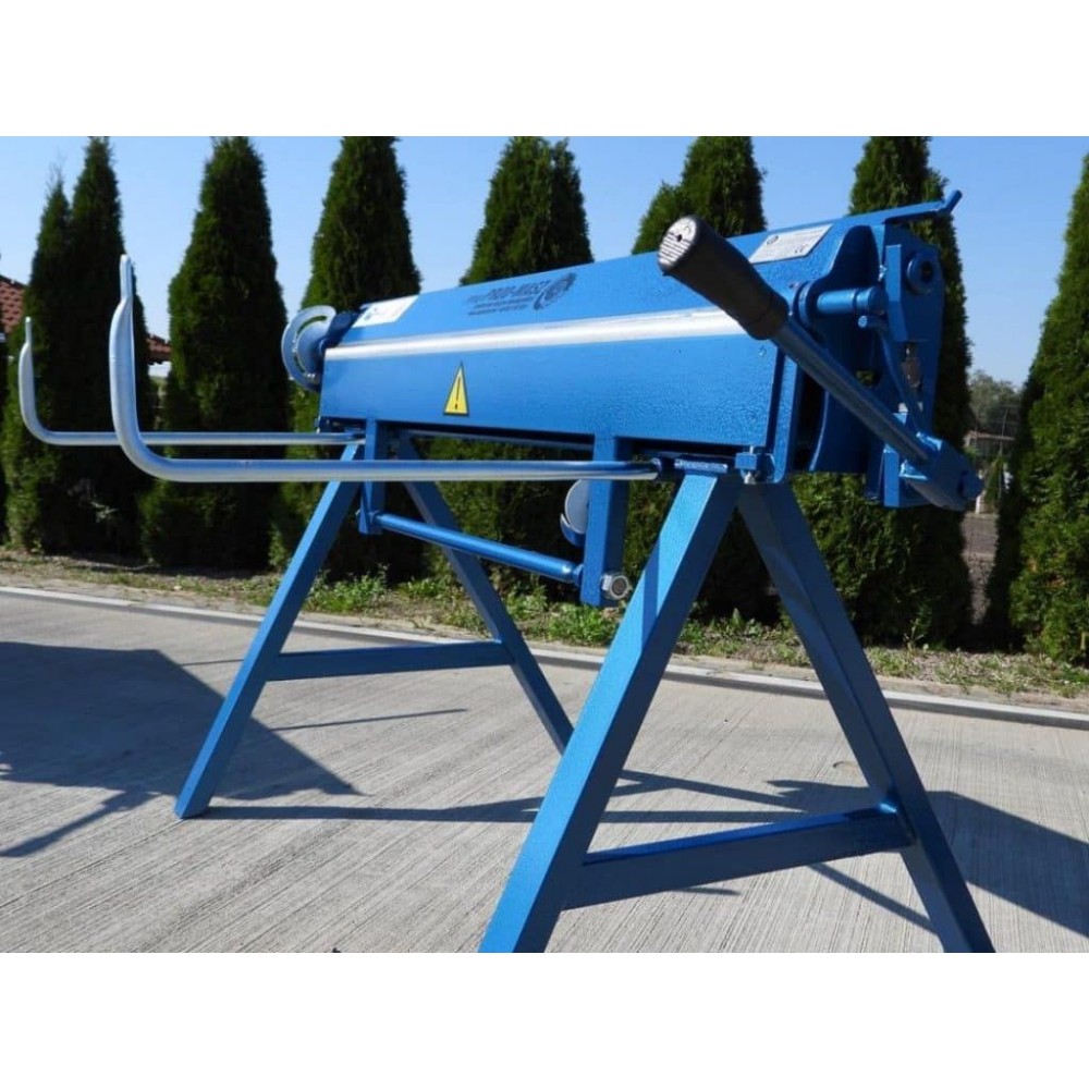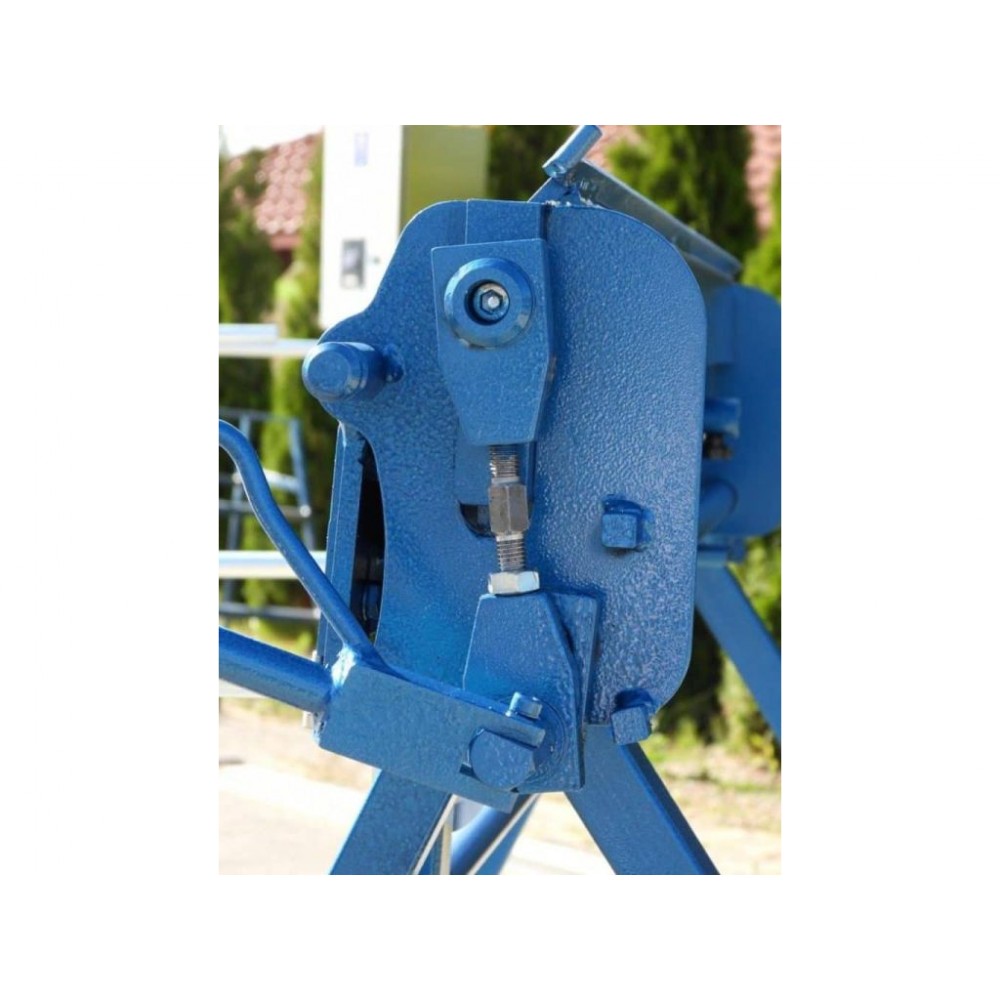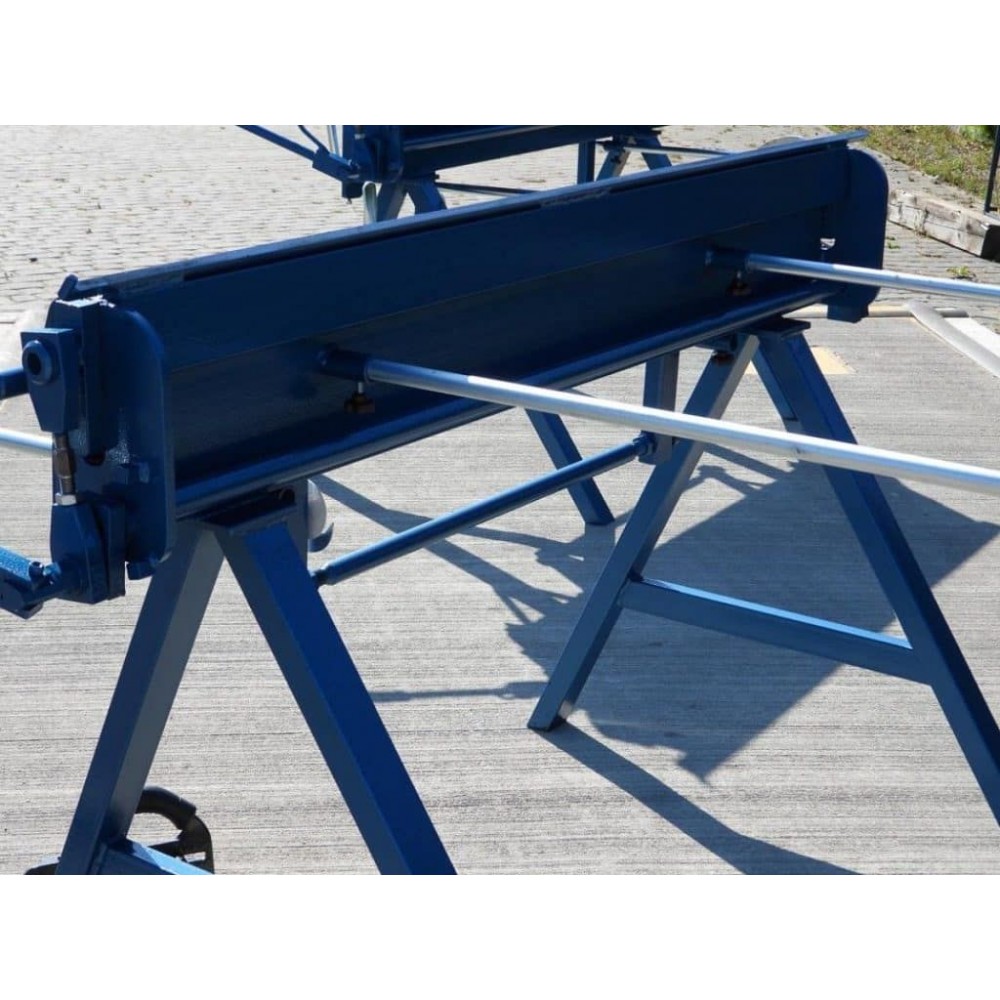 Товщина згинальної балки - 15 мм, хід притискної балки - 80 мм. Верхня балка може підніматися у трьох положеннях. Для підтримки листів у задній частині верстата є упори. Градусна шкала допомагає точно виставити кут згину, а вбудований кутомір забезпечує точне згинання заготовки під заданим кутом. Опційно доступні до замовлення роликовий ніж і доварювальник. Ніжки верстата знімні, що дозволяє зручно його транспортувати. Цей портативний листозгин може ефективно використовуватися безпосередньо на об’єктах, також буде вдалим вибором для майстерень з обмеженим робочим простором.