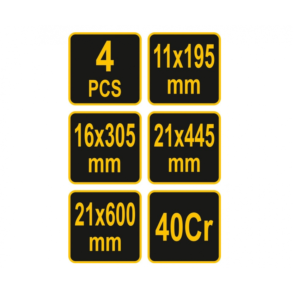 Ломи з руків'ям VOREL; 4 шт. l= 195/ 305/ 445/ 600 мм, пруг- 11/ 16/ 21 мм
