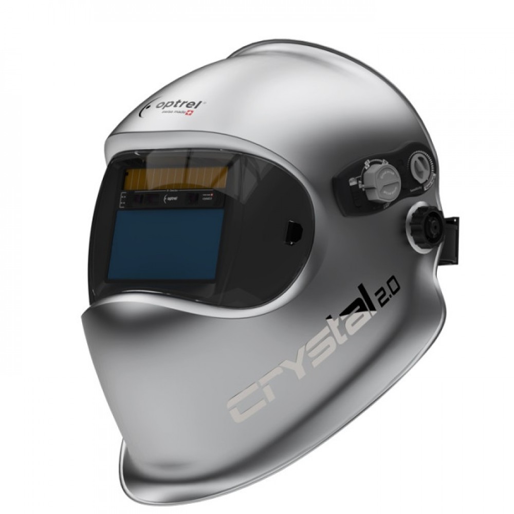 Одним з варіантів масок зварника преміального сегменту є маска Optrel Crystal 2.0 (Швейцарія). Це маска-хамелеон із світофільтром автоматичного затемнення. Ця маска має оптимальні параметри для щоденного використання, такі як зручне оголів’я та невелика (усього 460 грамів) вага. Проте основна перевага масок Crystal 2.0 – це власне технологія, яка забезпечує зручний чіткий огляд на робочу поверхню, як під час зварювання, так і під час збиральних робіт та шліфування. У неактивному стані ступінь захисту очей 2 DIN, пропускання світла 31%. Також реалізовано відтворення природних кольорів за технологією True Color.Проте це не єдина перевага маски від Optrel, оскільки уся маска є комплексним рішенням для захисту зору. Тому розглянемо основні технології, які відповідають за роботу:ShadeTronic® – не потрібно самостійно налаштовувати чутливість маски та ступінь її затемнення. Інтелектуальна система повністю автоматично відстежує рівень світлового навантаження завдяки конструкції з 3 чутливих сенсорів і встановлює потрібний рівень захисту. За бажанням автоматику можна вимкнути і вручну керувати затемненням та чутливістю маски. Для живлення такої системи встановлено сонячну батарею та дві батарейки (CR2032).FadeTronic® – жодного блимання через залишкове підсвічування. Запатентована технологія, яка повільно просвітлює світлофільтр після завершення зварювання. Мінімум навантаження на очі, навіть якщо працювали з струмами високого амперажу.Регульований кут спрацьовування сенсорів (60° / 80°), жодних випадкових спрацьовувань на сторонні світлові імпульси. Керування чутливістю світлофільтра, ступенем затемнення та режимом різання/шліфування винесено зовні на шолом. Налаштування затримки відкриття розташоване на картриджі світлофільтра. Всередині зручне оголів’я. Також варто відзначити, що Optrel Crystal2.0 розрахована на роботу за екстремальних умов (робочий діапазон температур від -10°C до + 70°C).