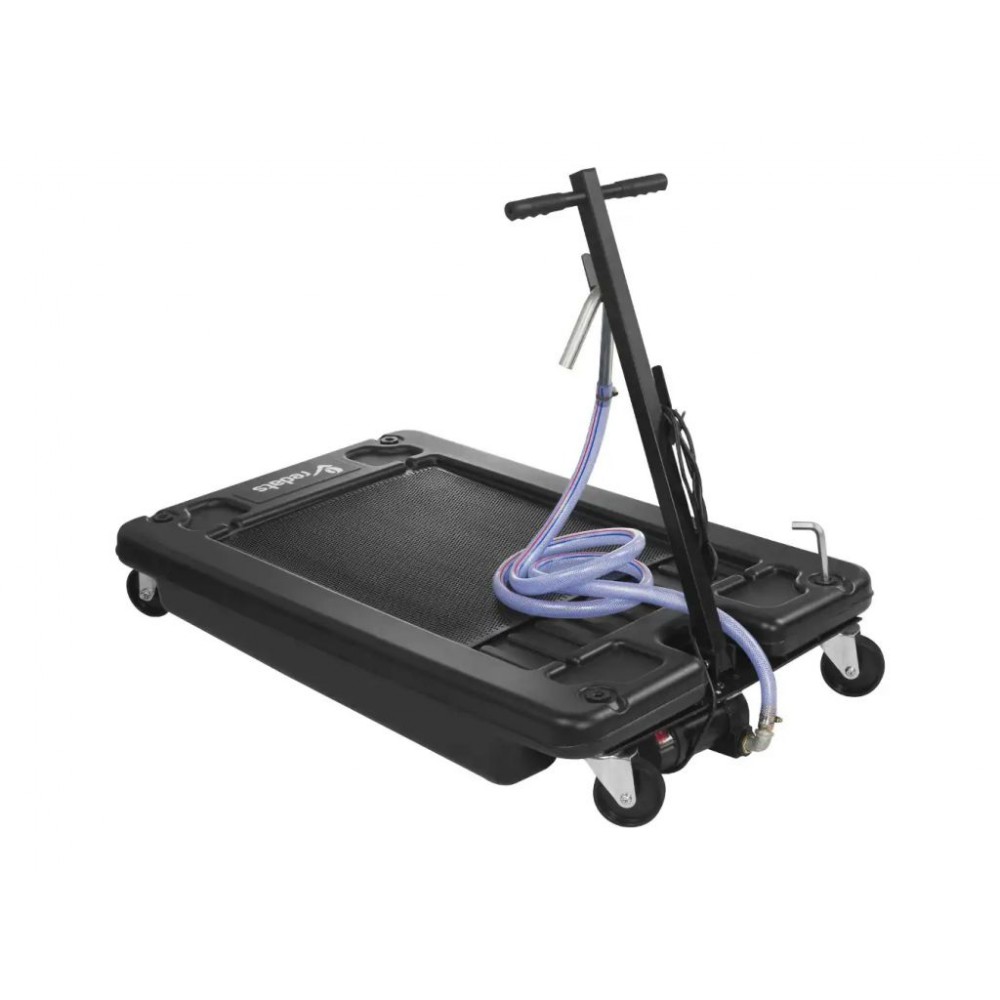 Об’єм бака 64 л дозволяє зібрати відпрацьоване мастило з кількох автомобілів без необхідності частого спорожнення. Спеціальний зливний фільтр і висота піддона 20 см запобігають розбризкуванню мастила. ККД насоса - 22-25 л/хв. Завдяки ручці і поворотним колесам пристрій можна легко переміщати по майстерні і зручно позиціонувати під автомобілем. Ручка має гумову накладку для запобігання ковзанню. Цей маслозливач для СТО виготовлений з високоякісних матеріалів, що забезпечує його довготривалу службу.