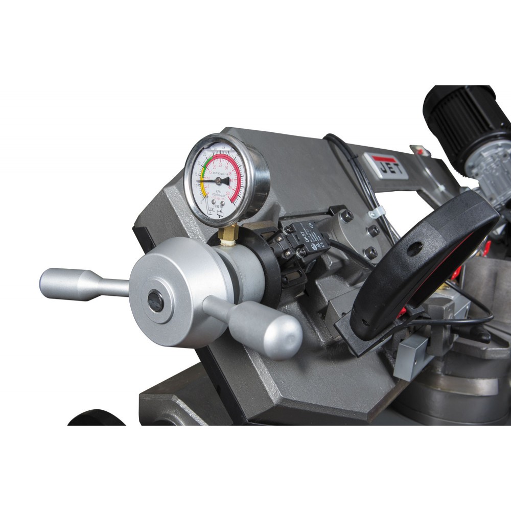 - Гидравлическая система подачи обеспечивает автоматическое плавное опускание консоли пилы