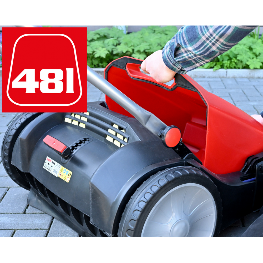 - Унікальна конструкція з передніми щітками: Дві передні щітки, які обертаються у протилежних напрямках, дозволяють ефективно збирати сміття ємність 48 л, забезпечуючи рівномірне прибирання.