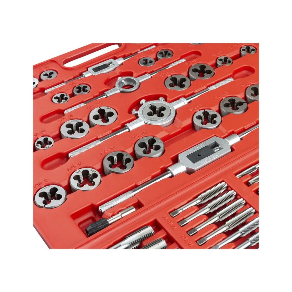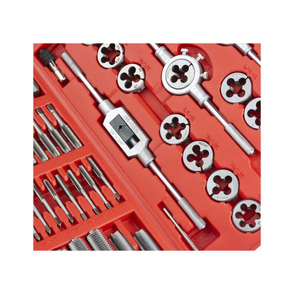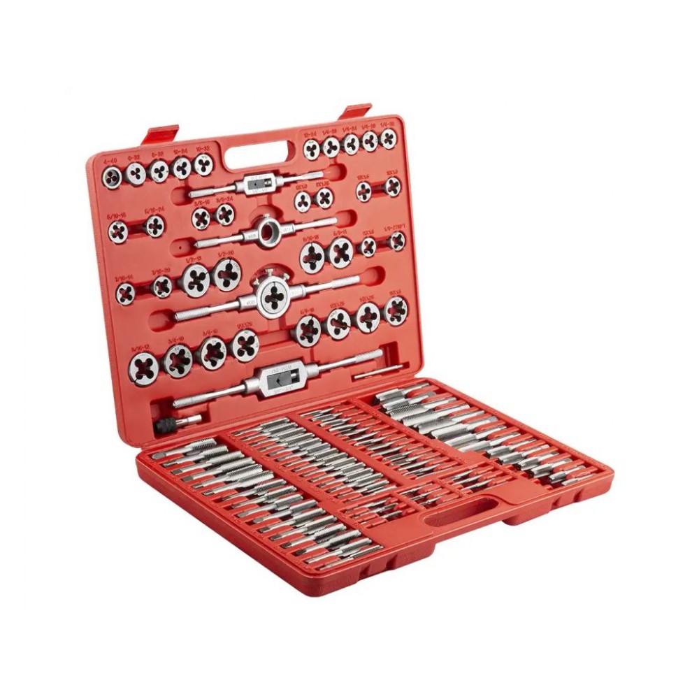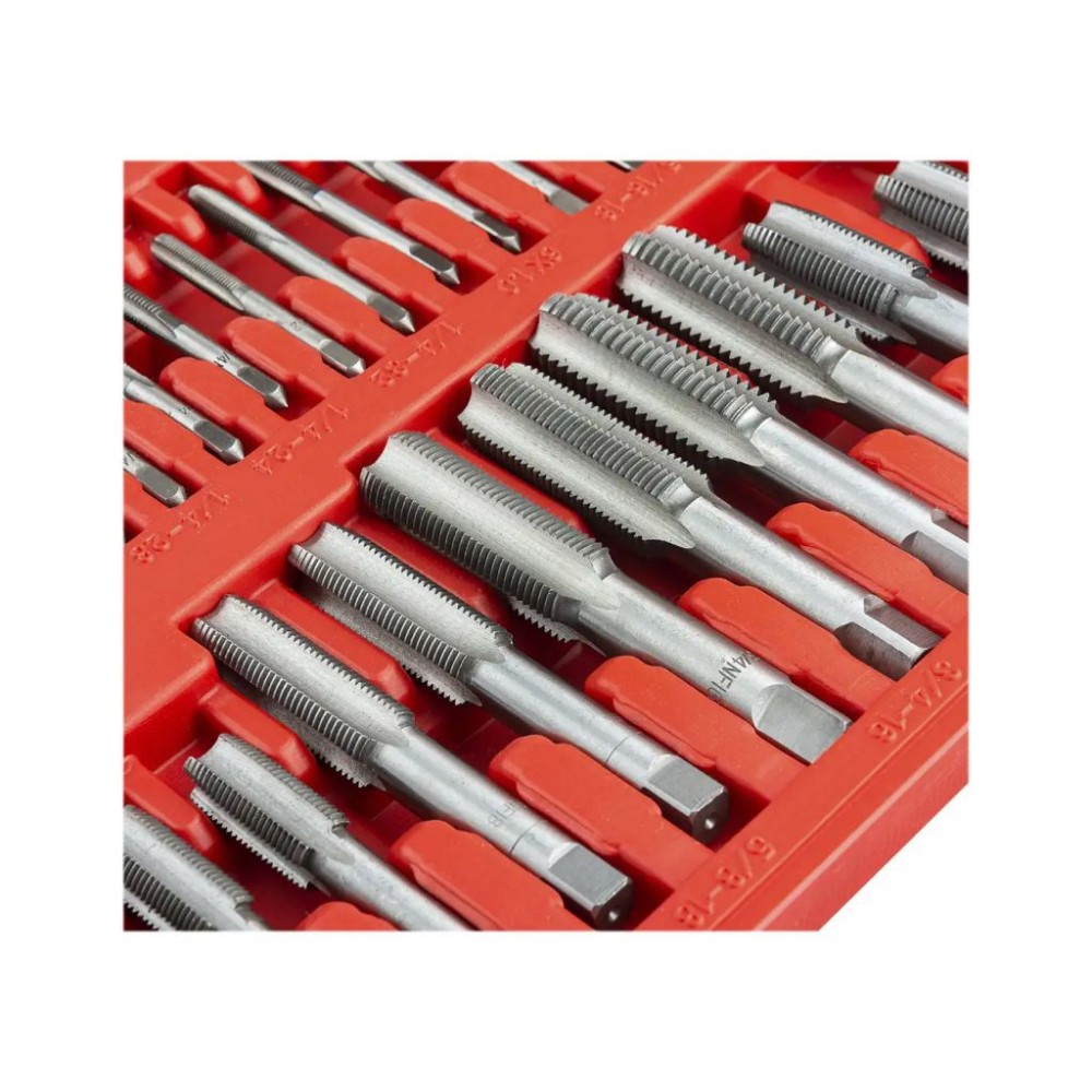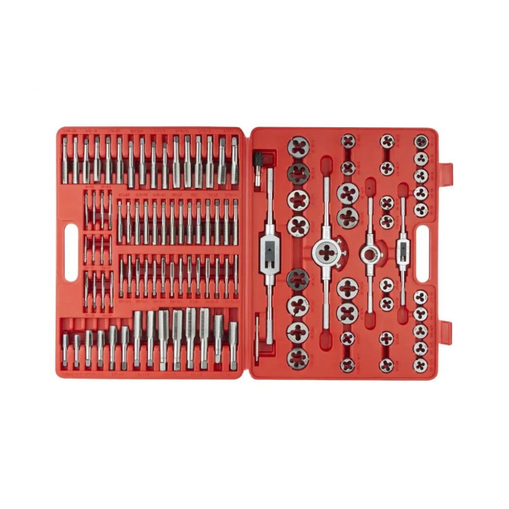 Цей універсальний комплект призначений для нарізання та відновлення різьби різних типів. Підходить для роботи як з метричними, так і з дюймовими різьбами, що робить його незамінним інструментом для автомайстерень, слюсарних робіт і домашнього використання.