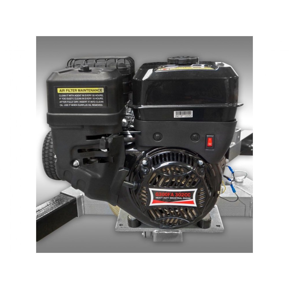 Він оснащений бензиновим двигуном потужністю 10 к. с., який приводить в дію гідравлічний насос. Діапазон бокового повороту охоплює радіус приблизно 155 градусів.