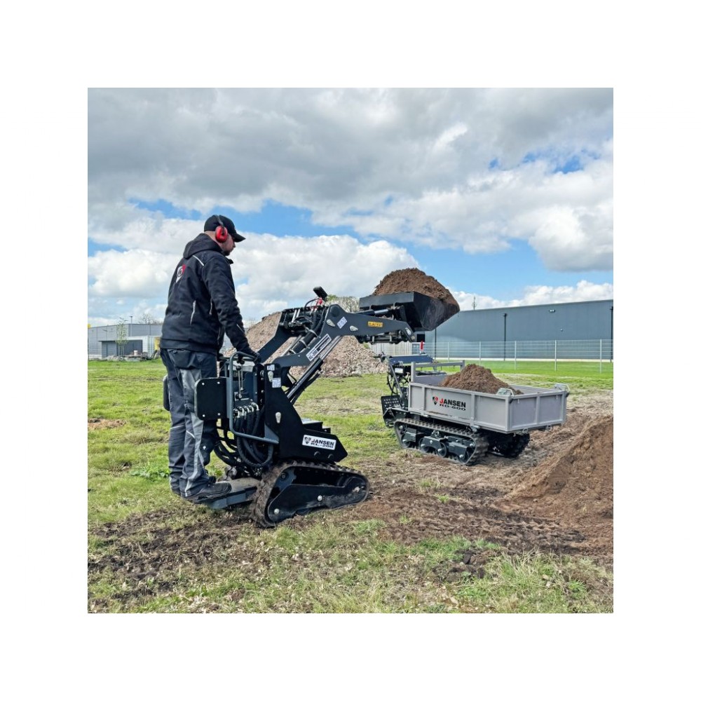 Міні-навантажувач Jansen ® KL-200 — це компактний і потужний міні-екскаватор із платформою для стоячого оператора, розроблений для вирішення широкого спектра завдань. Завдяки своїй надійній конструкції, гусеничному шасі та потужному двигуну, він забезпечує високу маневреність і стабільність навіть на нерівній місцевості. Jansen ® KL-200 легко впорається з важкими умовами роботи та стане незамінним помічником у ваших проектах.