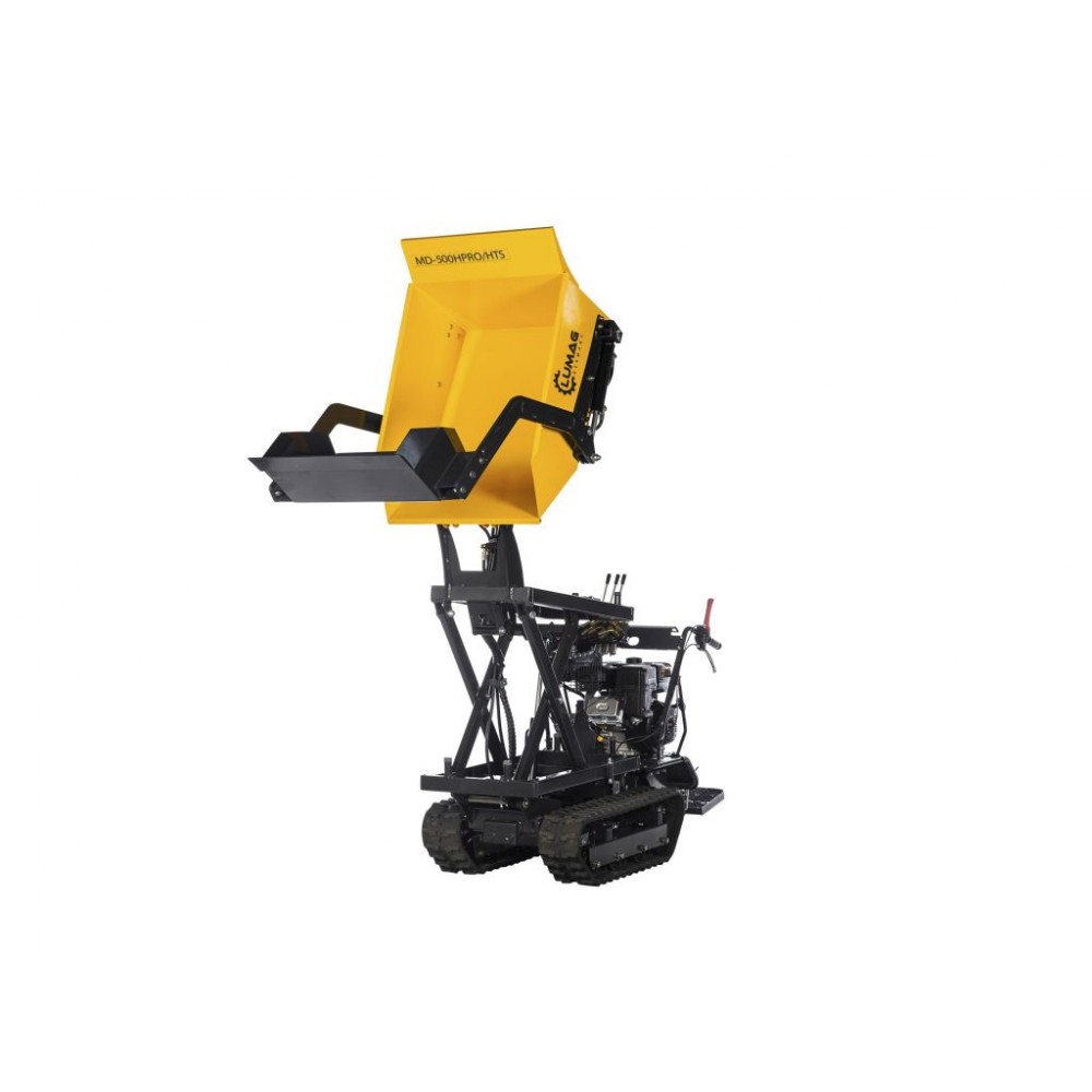 Міні самоскид Lumag MD500H-PRO-HTS відмінно працює у найскладніших умовах завдяки своїй міцній конструкції та високоякісним матеріалам. Конструкція дозволяє забезпечити високу ефективність і економічність. Гусеничний міні самоскид MD500H-PRO-HTS з гідравлічним перекидним ковшем, завдяки своїм габаритам, може вільно використовуватися у вузьких проходах та доріжках, а також може легко завантажувати та розвантажувати матеріали на різній робочій висоті. Вантажопідйомність 500 кг.