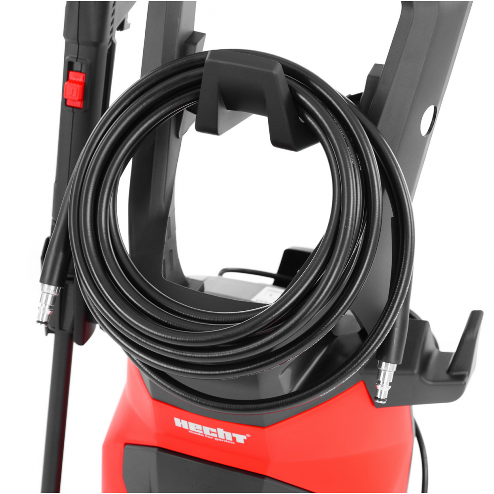 Потужність 2000 Вт та тиск 160 бар гарантують ефективне миття авто, мотоциклів, фасадів, терас та тротуарів. З варіативною форсункою можна легко регулювати витрату води та напрямок струменя. Вбудована котушка для швидкого зберігання шланга та ємність для миючих засобів забезпечують практичність використання. Зручність транспортування та зберігання забезпечуються довжиною шланга 5 м, котушкою для кабелю та ручкою з колесами. Насолоджуйтеся чистотою без зусиль з мийкою високого тиску HECHT 333.
