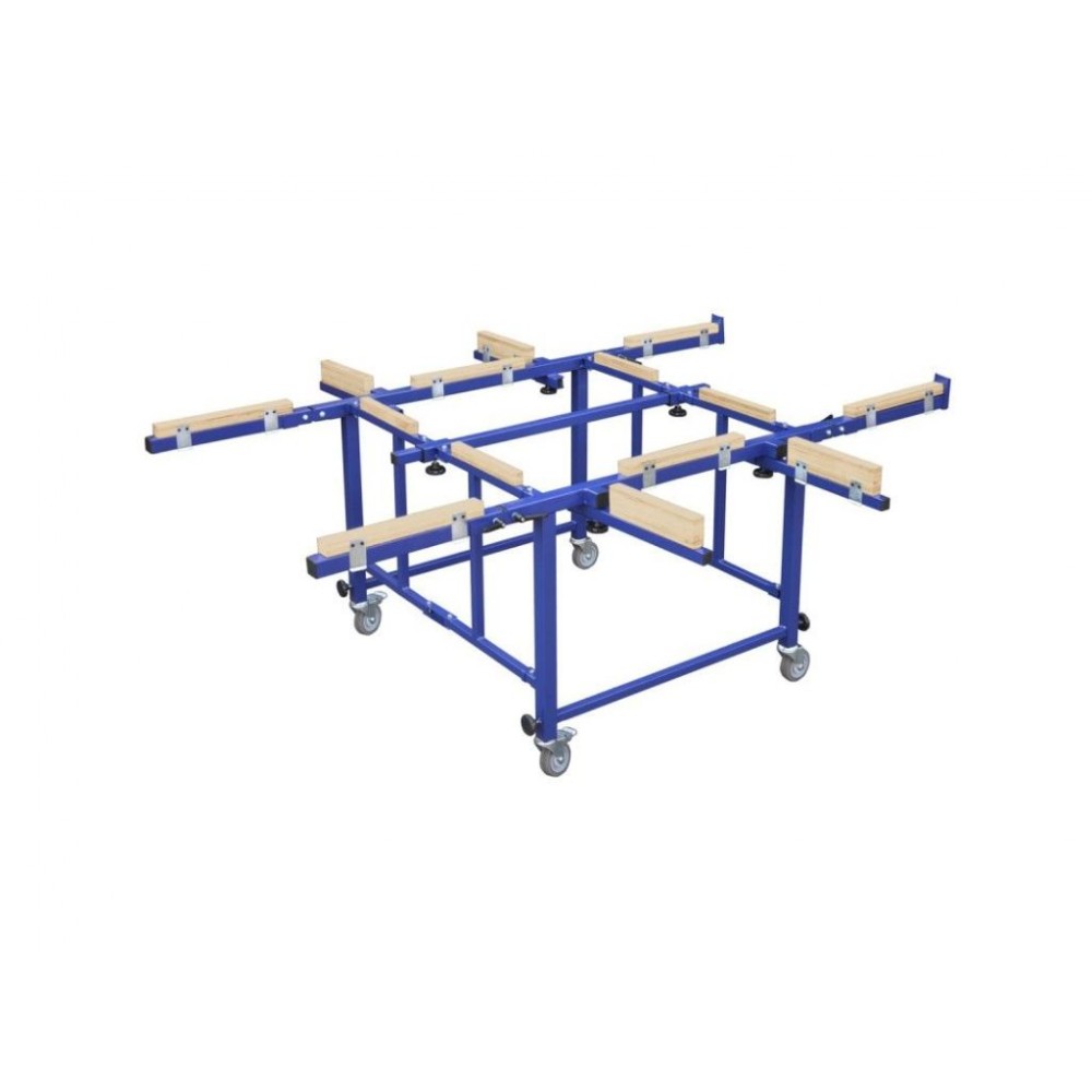 Стіл можна використовувати для фрезерування, різання, склеювання та складання. Після закінчення роботи його можна скласти, він займає невелику площу. Дуже міцна сталева конструкція забезпечує тривалий термін служби.