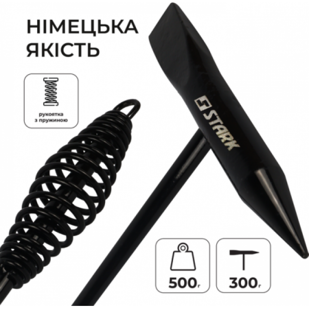 Молоток зварювальника STARK 300 г - професійний інструмент, який призначений для очищення швів, відбивання шлаку та інших подібних робіт необхідних під час виконання зварювальних робіт.Особливості молотка зварника Штарк 300 г:Молоток має вузьку загострену сторону бойка і конусоподібну сторону.Ручка - повністю металева, додатково оснащена сталевою рукояткою-пружиною.Маса молотка зварювальника - 500 грам.Маса бойка - 300 грам.