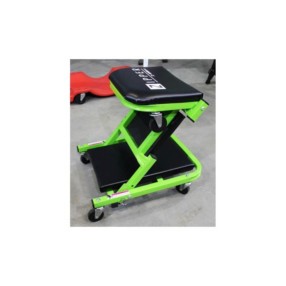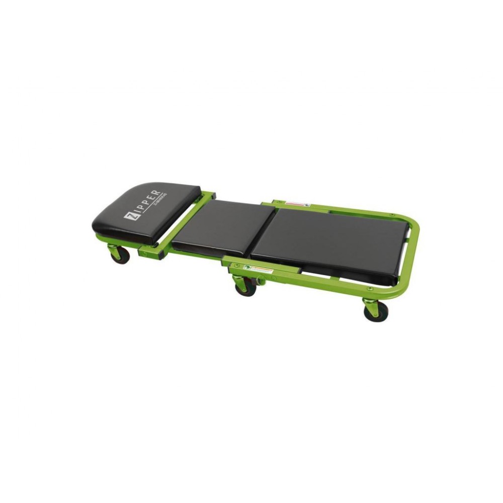 Металевий лежак - це міцний і маневрений лежак для автослюсаря на 6 колесах. Жорсткий металевий каркас відповідає за міцність всієї конструкції. Зверху розташований матрац з шкірозамінника, наповнений поролоном. Його легко очистити від пилу і бруду мокрою ганчіркою.