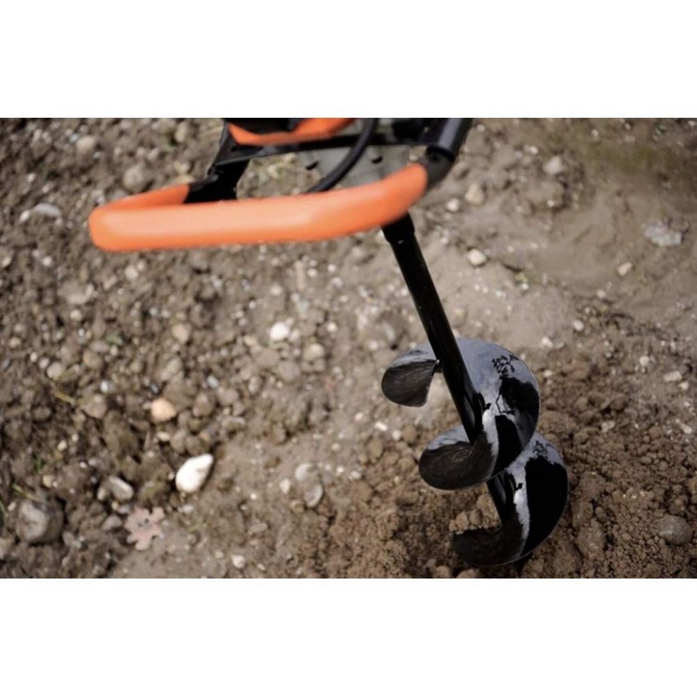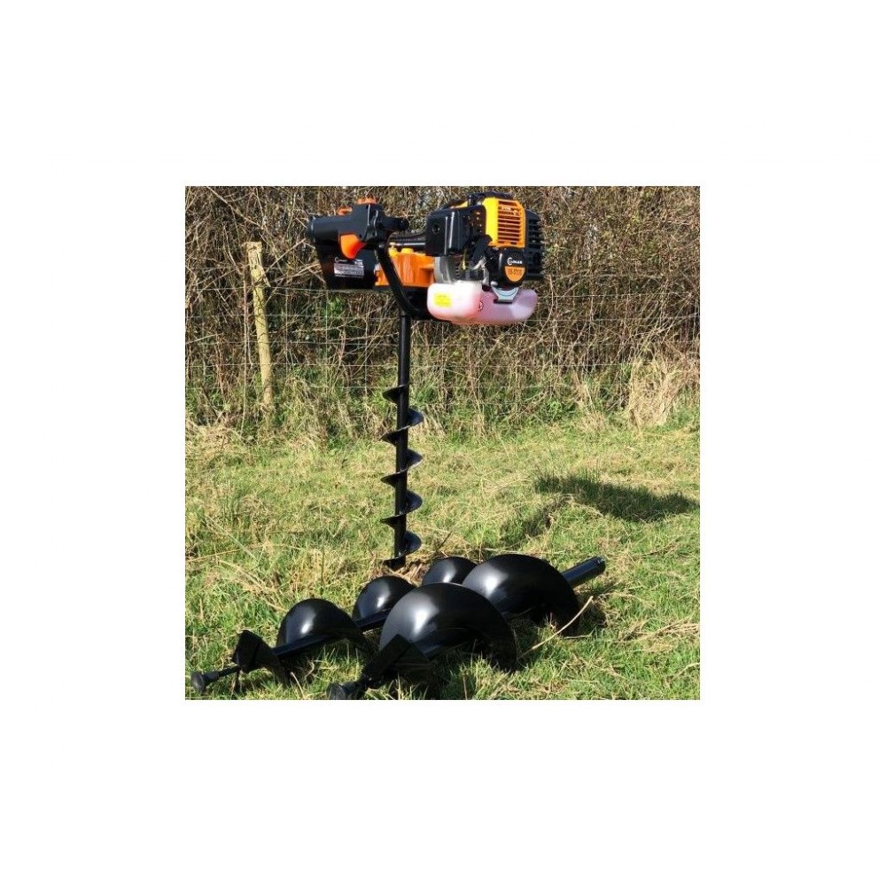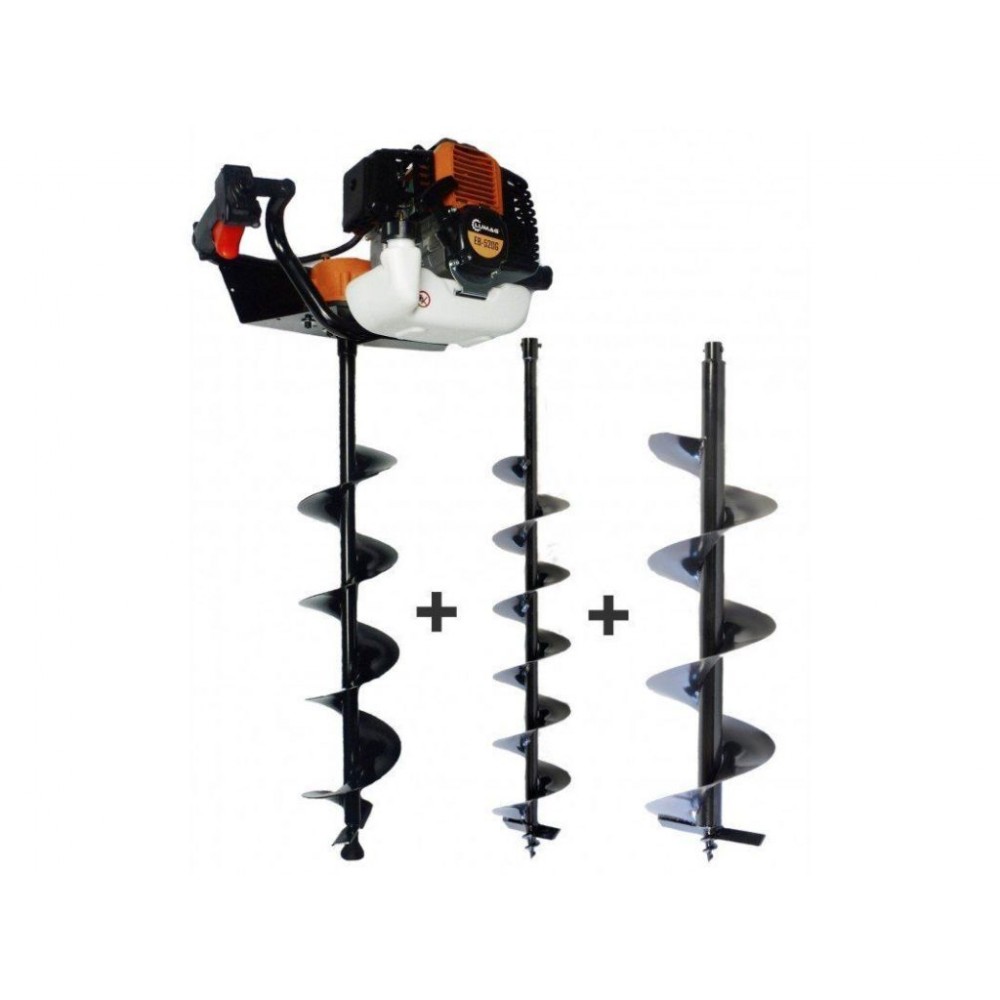 Мотобур поставляється з 3 шнеками різного діаметра (100, 150, 200 мм) довжиною 800 мм, що дозволяє адаптувати інструмент для різних завдань. Шнеки мають центруючі наконечники, що забезпечує максимальну точність буріння. Компактний розмір, невелика вага, ергономічні ручки з вібропоглинаючого матеріалу, а також зручно розміщені та інтуїтивно зрозумілі елементи керування забезпечують високу зручність роботи. На нашому сайті ви можете цей та інші мотобури купити з гарантією і доставкою по Україні.