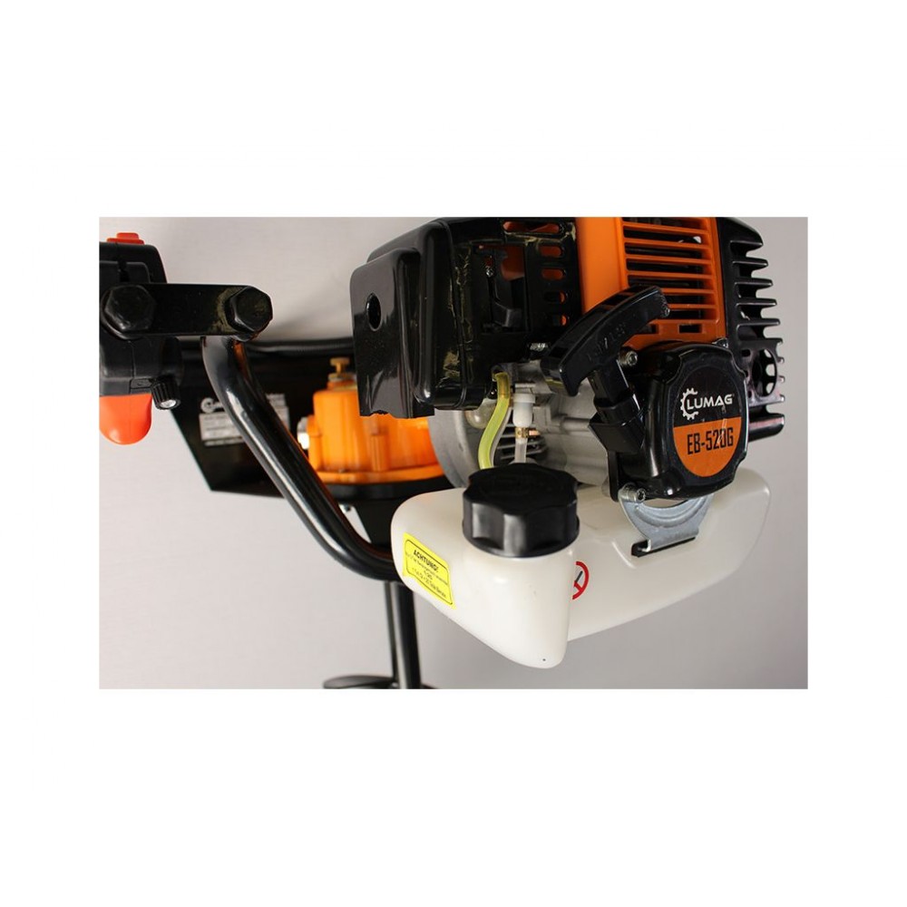 Мотобур Lumag EB520G - це універсальний інструмент для буріння грунту під різні завдання (встановлення опор і огорож, посадка дерев, монтаж технічних конструкцій тощо), який буде ефективним як у власному господарстві, так і для робочих задач. Оснащений фірмовим одноциліндровим двотактним бензиновим двигуном з повітряним охолодженням, який має потужність 1,75 кВт та об’єм 52 м³. Дана модель облаштована редуктором черв’ячного типу, який розташований у масляній ванні. Відомий своєю надійністю та ефективною продуктивністю.