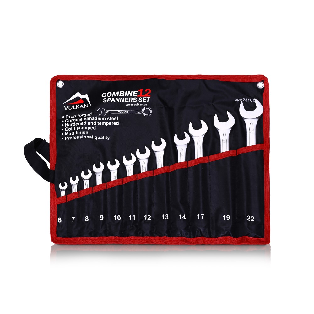 Опис Набір комбінованих ключів Vulkan 6-22 мм, 12 шт. в чохлі