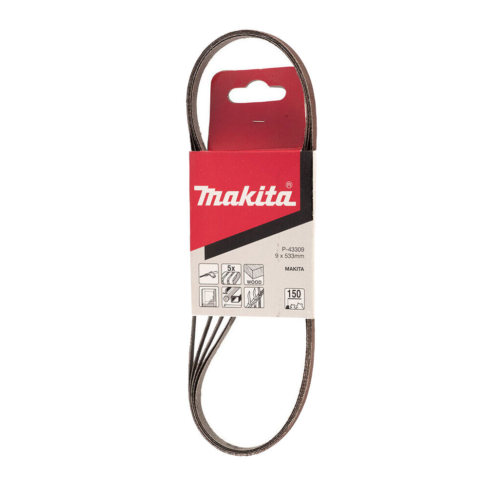 Набір шліфувальних стрічок MAKITA 9x533 мм K150, 5 шт, P-43309 — професійне рішення для фінішного шліфування