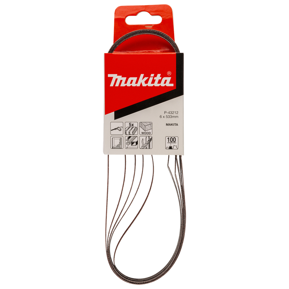 Набір шліфувальних стрічок MAKITA 6x533 мм K100, 5 шт, P-43212 — точна обробка для проміжного та чистового шліфування