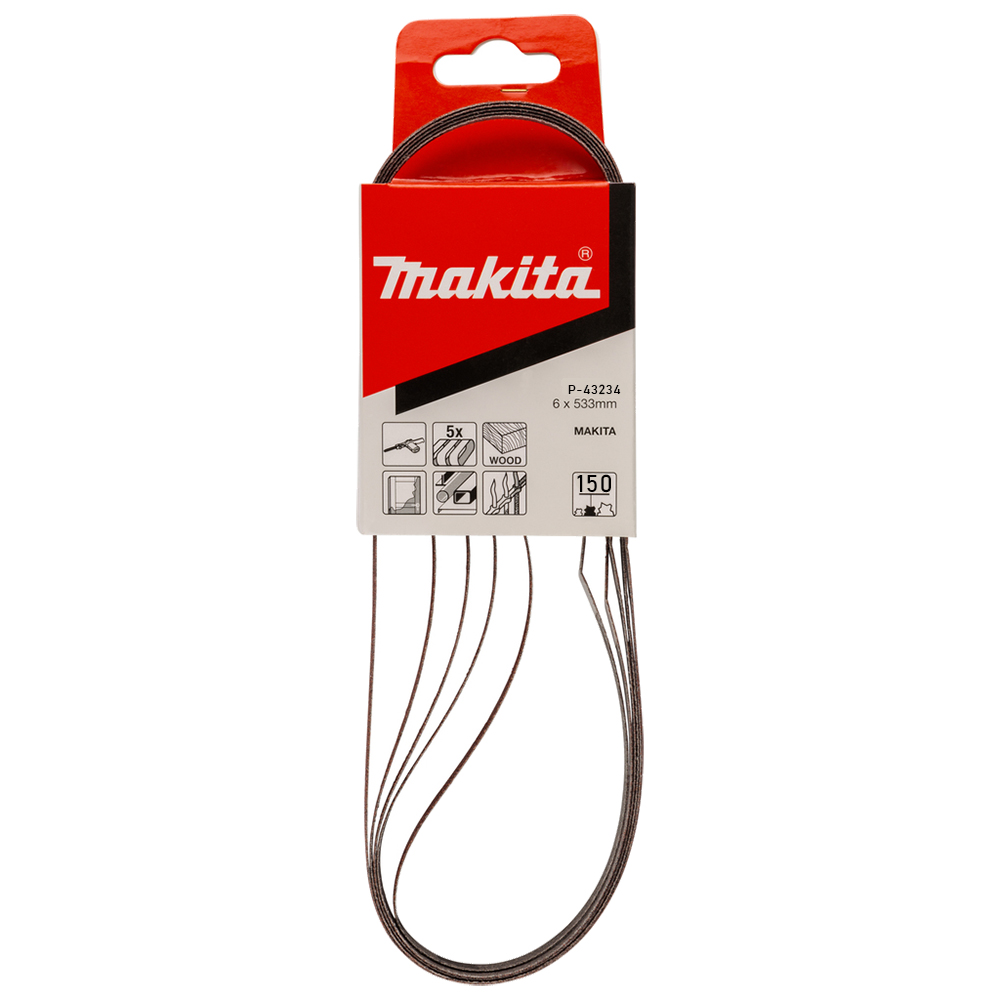 Набір шліфувальних стрічок MAKITA 6x533 мм K150, 5 шт, P-43234 — точне фінішне шліфування для професіоналів