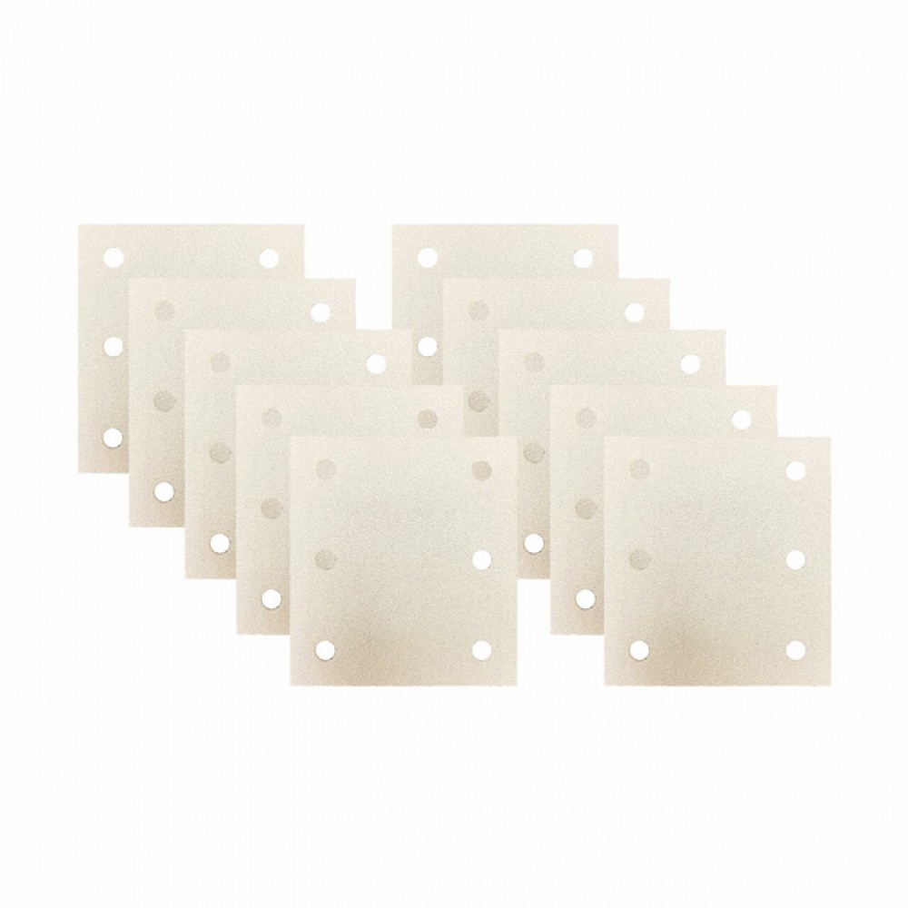 Набір включає 10 штук шліфувального паперу, що є оптимальним для виконання значного обсягу робіт або для періодичного використання в домашніх умовах та невеликих майстернях. Це забезпечує наявність необхідних витратних матеріалів завжди під рукою.