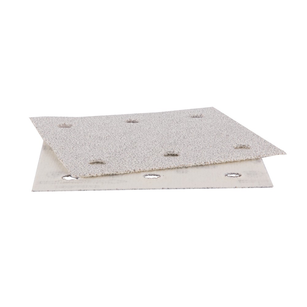 Шліфувальний папір оснащений 6 отворами для пиловидалення, що дозволяє підключити його до шліфувальної машини з системою пиловідведення. Це забезпечує чисту робочу зону, зменшує кількість пилу в повітрі та значно подовжує термін служби самого паперу, запобігаючи його забиванню. Стандартний розмір 114х102 мм забезпечує широку сумісність з більшістю вібраційних та дельта-шліфувальних машин.
