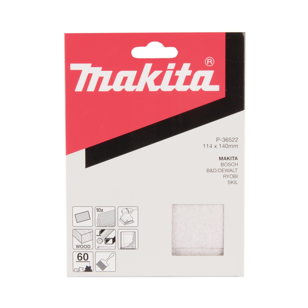 Опис Набір білого шліфувального паперу 114х140 мм К60 (10 шт.) Makita P-36522