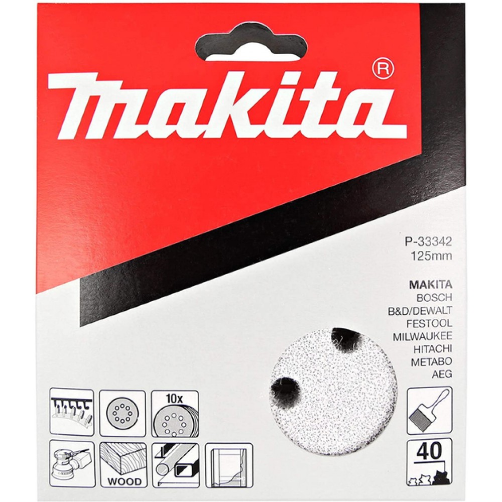Набір білого шліфувального паперу Ø125 мм К40 (10 шт.) Makita P-33342: Для інтенсивного чорнового шліфування та зняття матеріалу
