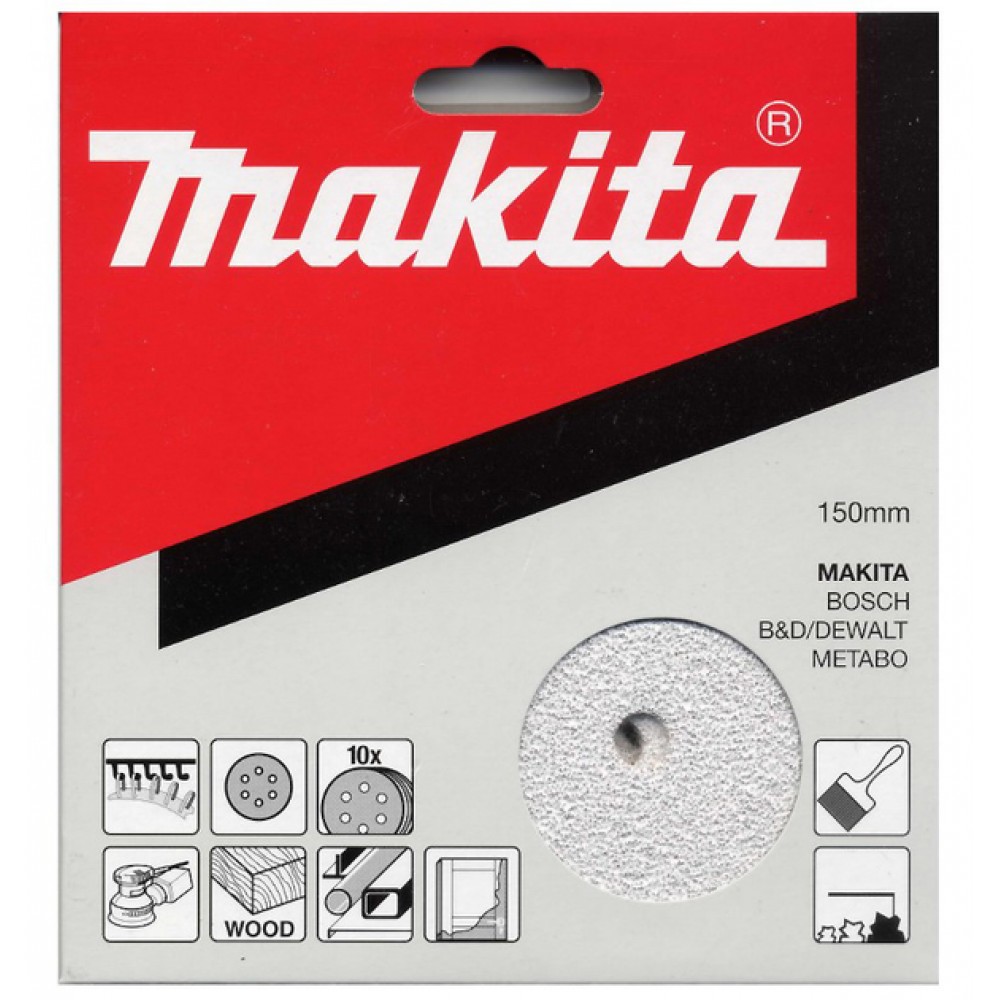 Набір білого шліфувального паперу Ø150 мм К180 6 отворів (10 шт.) Makita P-37708: Точна підготовка поверхні для якісних результатів