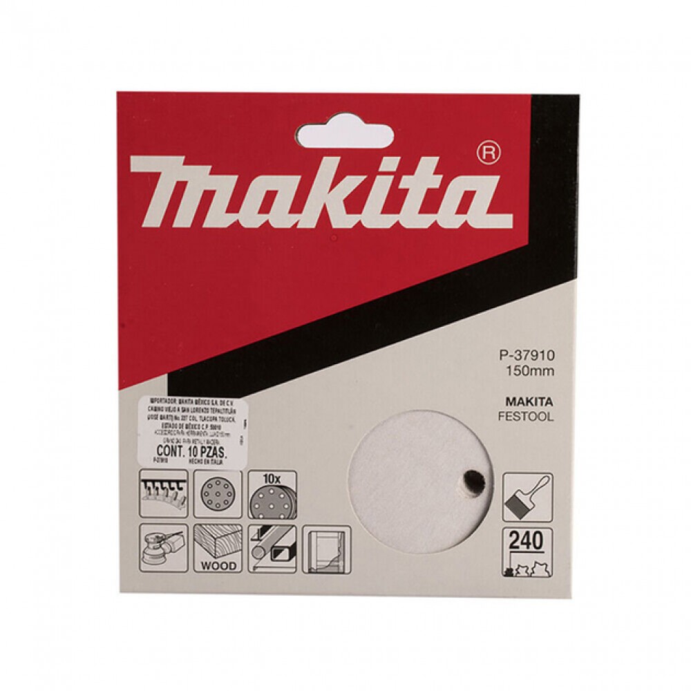 Набір білого шліфувального паперу Ø150 мм К240 9 отворів (10 шт.) Makita P-37910: Досконала фінішна обробка для бездоганних поверхонь