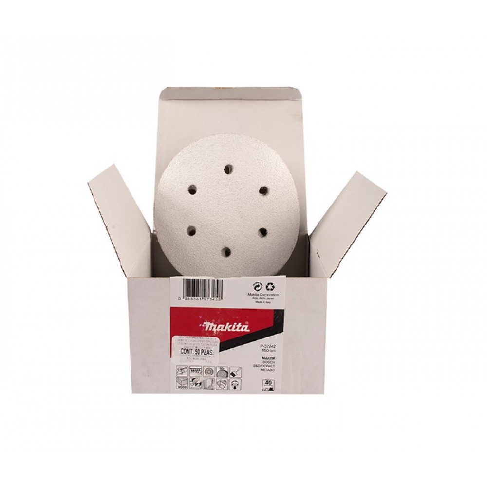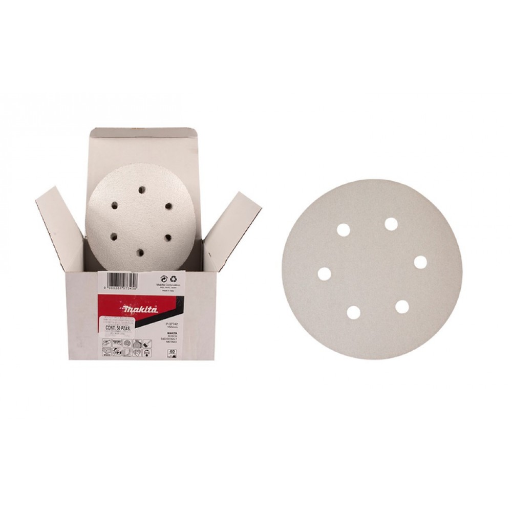 Набір білого шліфувального паперу Ø150 мм К40 6 отворів (50 шт.) Makita P-37742: Агресивне шліфування для швидкого результату