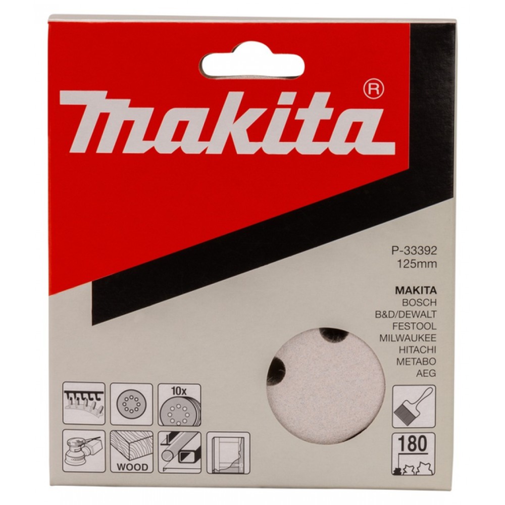 Опис Набір білого шліфувального паперу на липучці d=125 мм К180 8 отворів (10 шт.) Makita P-33392