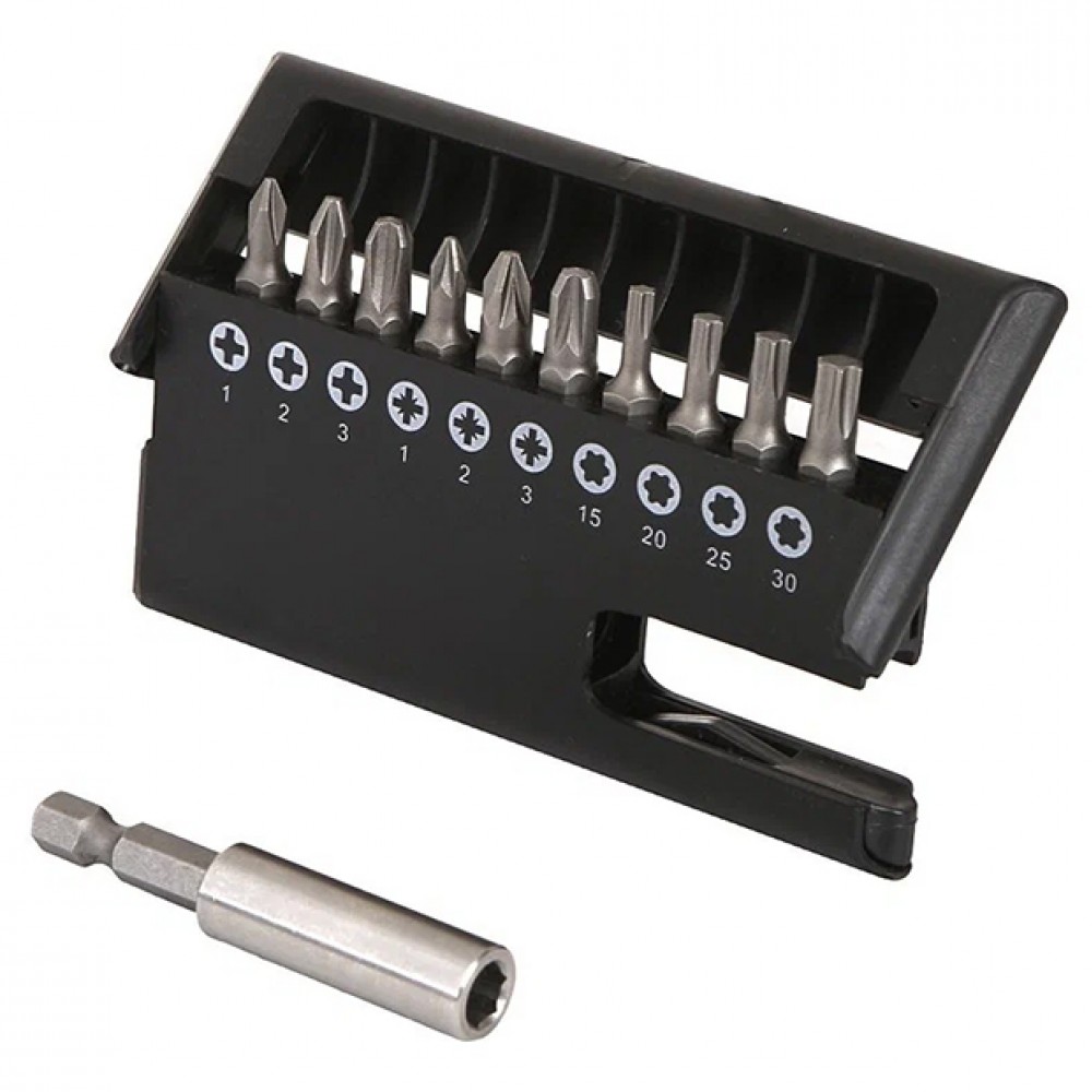 - Комплектація: Включає 11 найпопулярніших біт — PH, PZ, Torx — для широкого спектру завдань.