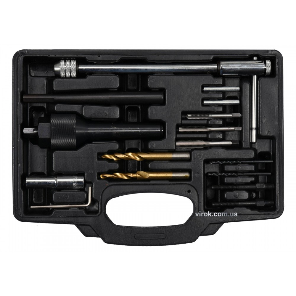- Професійний набір з 16 елементів, призначений для розборки та ремонту пробитих або спалених свічок запалу