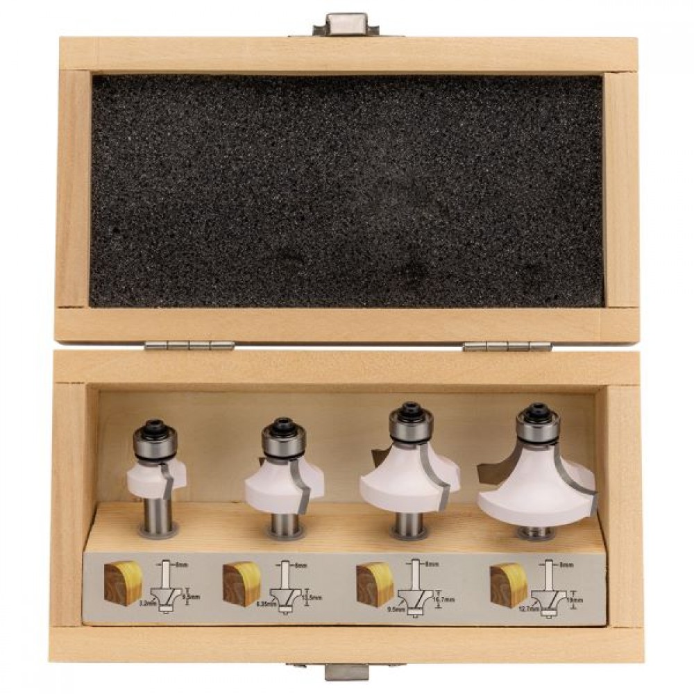 Набір включає чотири найбільш затребувані фрези, призначені для виконання широкого спектру операцій. Зі хвостовиком 8 мм, вони сумісні з більшістю сучасних фрезерних машин, що робить їх універсальним рішенням для вашої майстерні. Кожна фреза розроблена для певного типу робіт — від створення рівних країв та пазів до формування декоративних профілів, що дозволяє значно розширити ваші можливості в обробці матеріалів. Цей набір забезпечує високу продуктивність при виконанні різноманітних завдань.