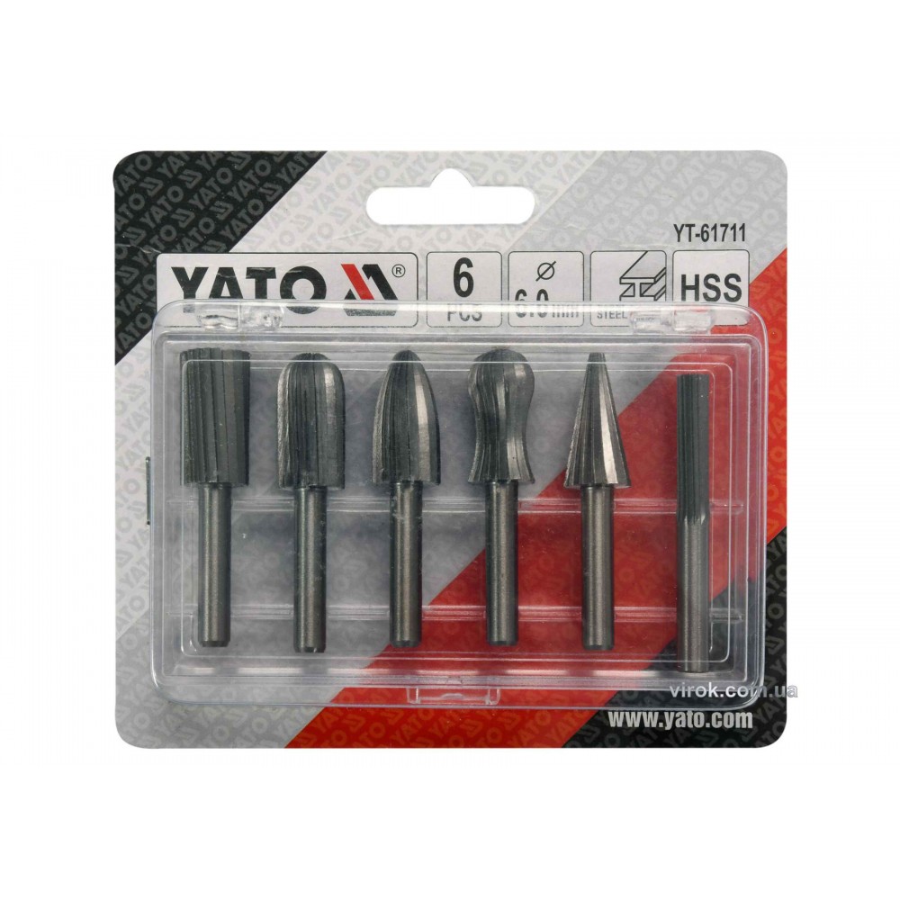 НАБІР ФРЕЗ РІЗНОЇ ФОРМИ ПО МЕТАЛУ YATO З ШПІНДЕЛЕМ 6 ММ 6 ШТ